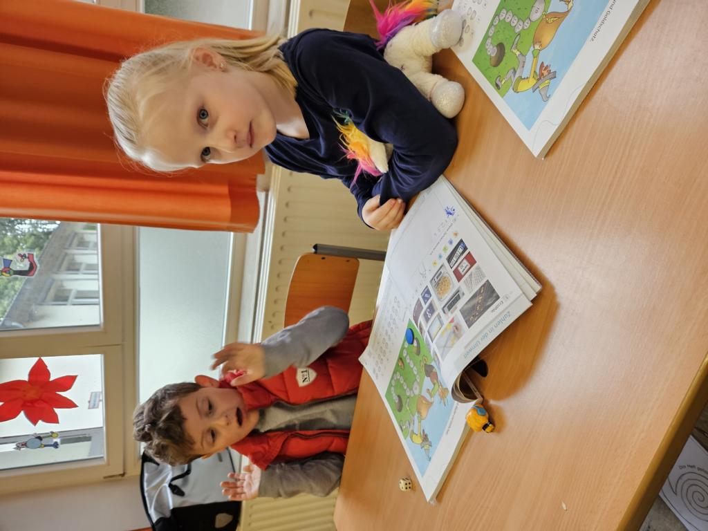 Heute haben unsere Paten mit uns gespielt. Sie haben uns die Spielegarage gezeigt. So wissen wir nun genau, was man dort zum Spielen finden kann. Die Paten erklärten uns, welche Dinge in der großen Pause nicht ausgeliehen werden dürfen. Das war heute wichtig, denn in der großen Pause durften wir zum ersten Mal etwas mit unseren Klammern ausleihen.