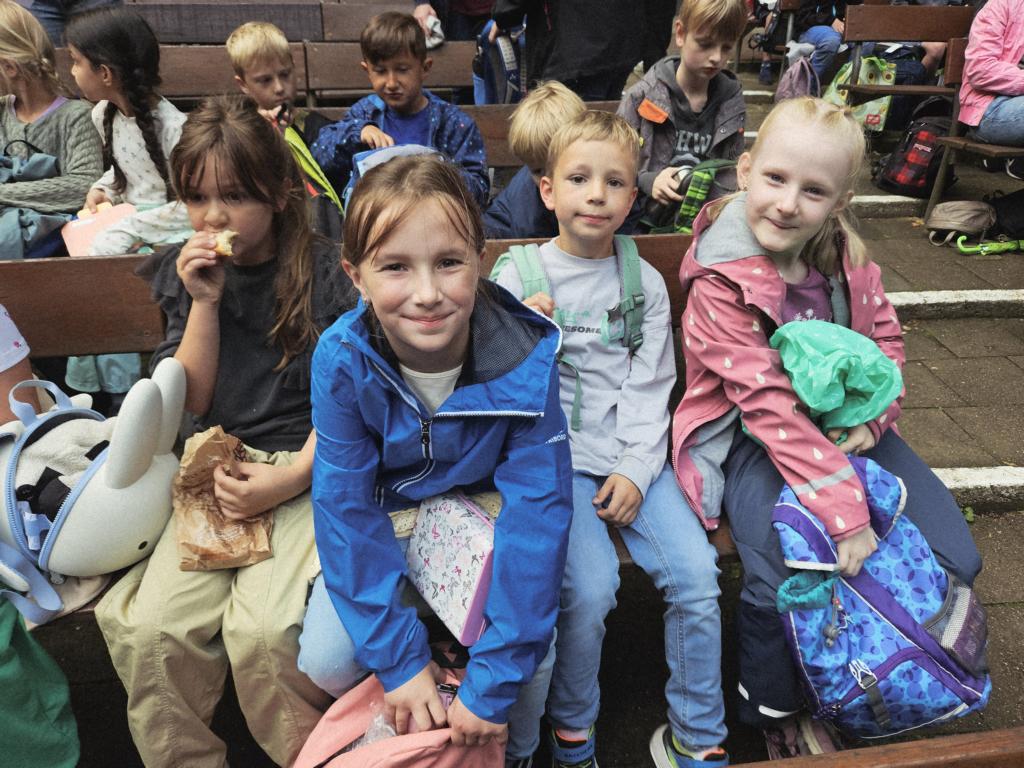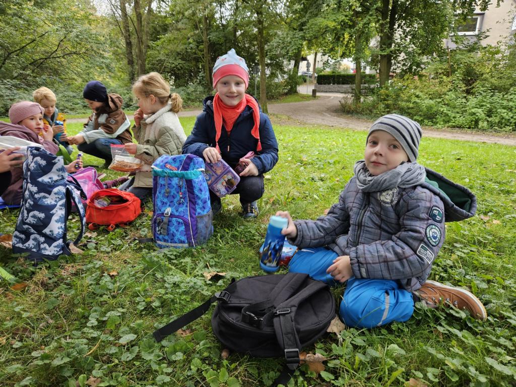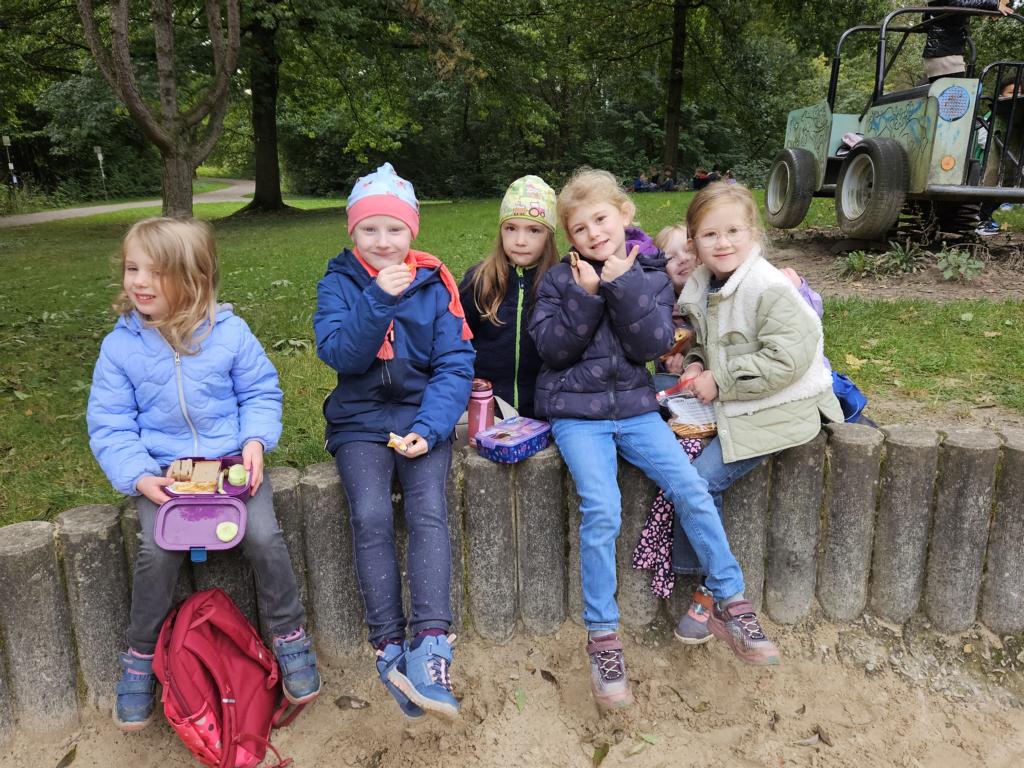Am 4.10. haben wir uns zuerst im Klassenraum getroffen. Dort haben wir für die beiden Geburtstagskinder Hugo und Sophie zwei Geburtstagslieder gesungen. Anschließend sind wir mit allen Kindern aus der 1.Klasse zum Spielplatz am Padersee gewandert. Die anderen Klassen der Schule sind zu verschiedenen Orten gelaufen. Es war nicht zu kalt an diesem Morgen und nach Regen sah es ebenfalls nicht aus. Als wir dort waren, konnten wir frühstücken und ganz viel spielen. Wir haben Fußball gespielt, im Sand gebuddelt, Fangen gespielt und ganz viele andere Dinge gemacht. Besonders lustig war es am Ende, als wir eine Entdeckertour gemacht haben. Dabei sind wir mit dem Wackelauto in ferne Länder gereist und haben verschiedene Tiere gesehen. Leider war die Zeit viel zu schnell vorbei und wir mussten zurück zur Schule. Unsere erste kleine Wanderung hat uns viel Freude gemacht. Der nächste Ausflug kann kommen!