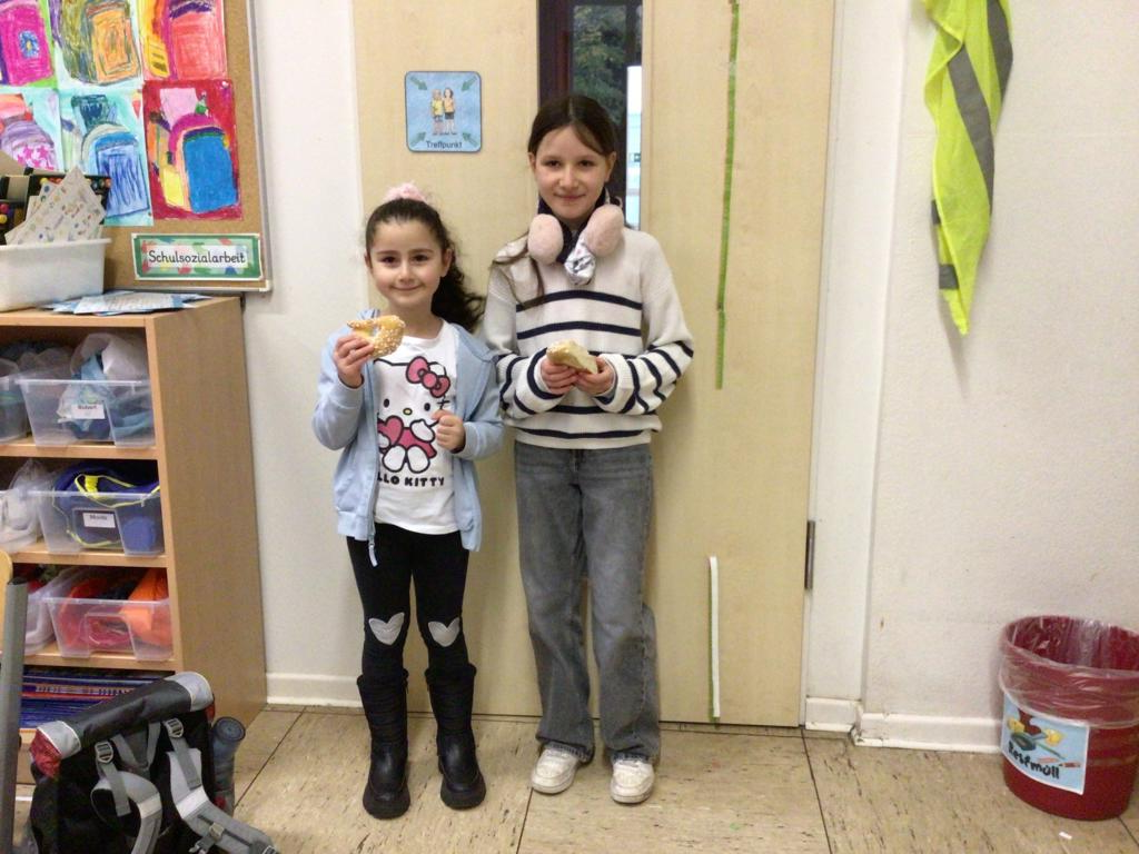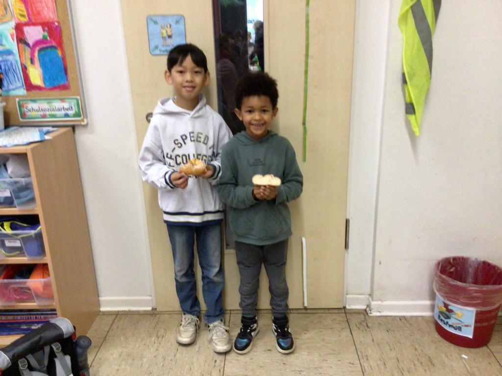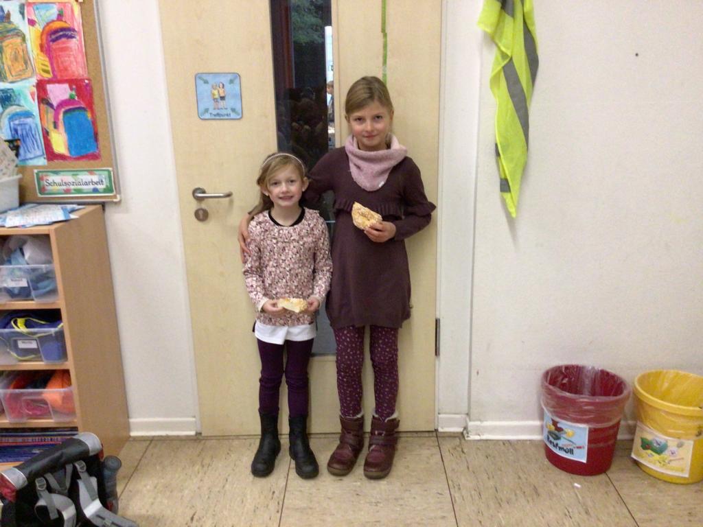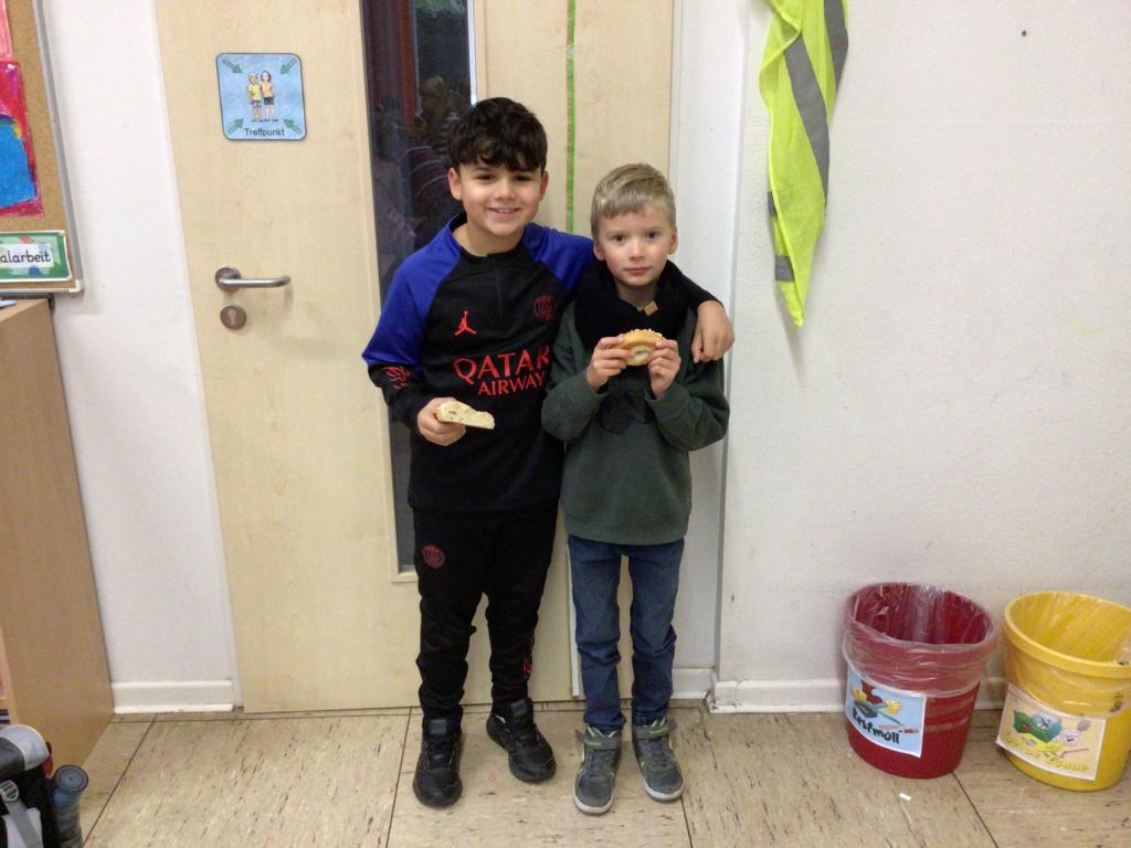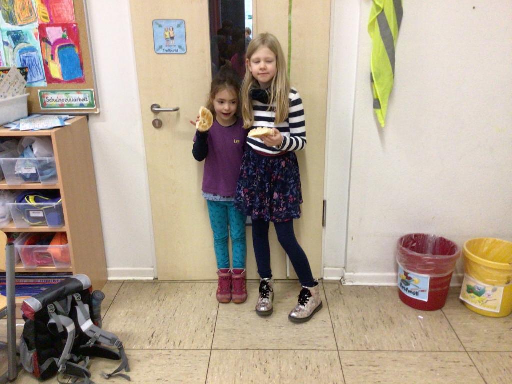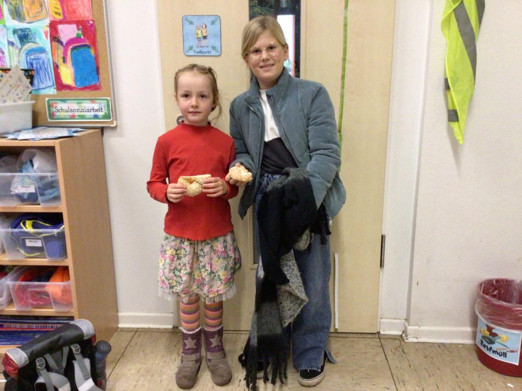 In der Schule gab es Martinsbrezel. Unsere Paten waren bei uns und wir haben die Brezel mit ihnen geteilt.