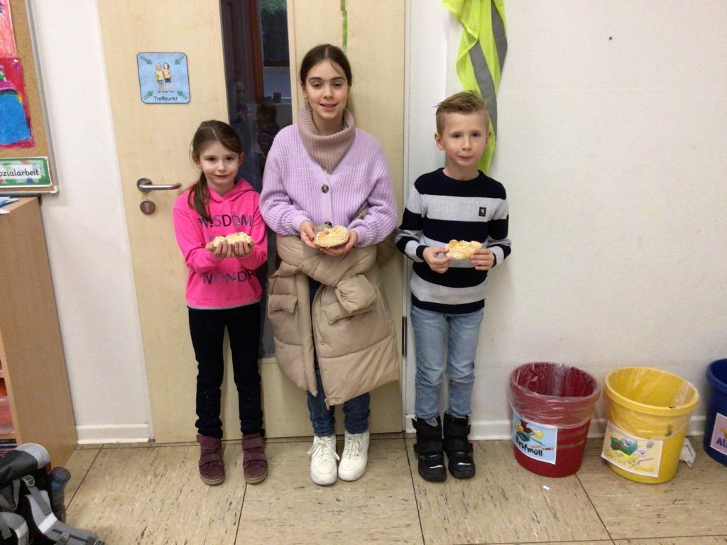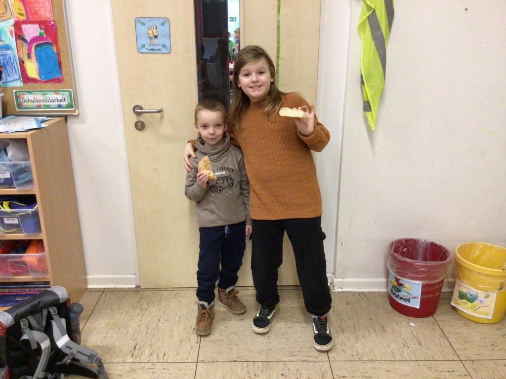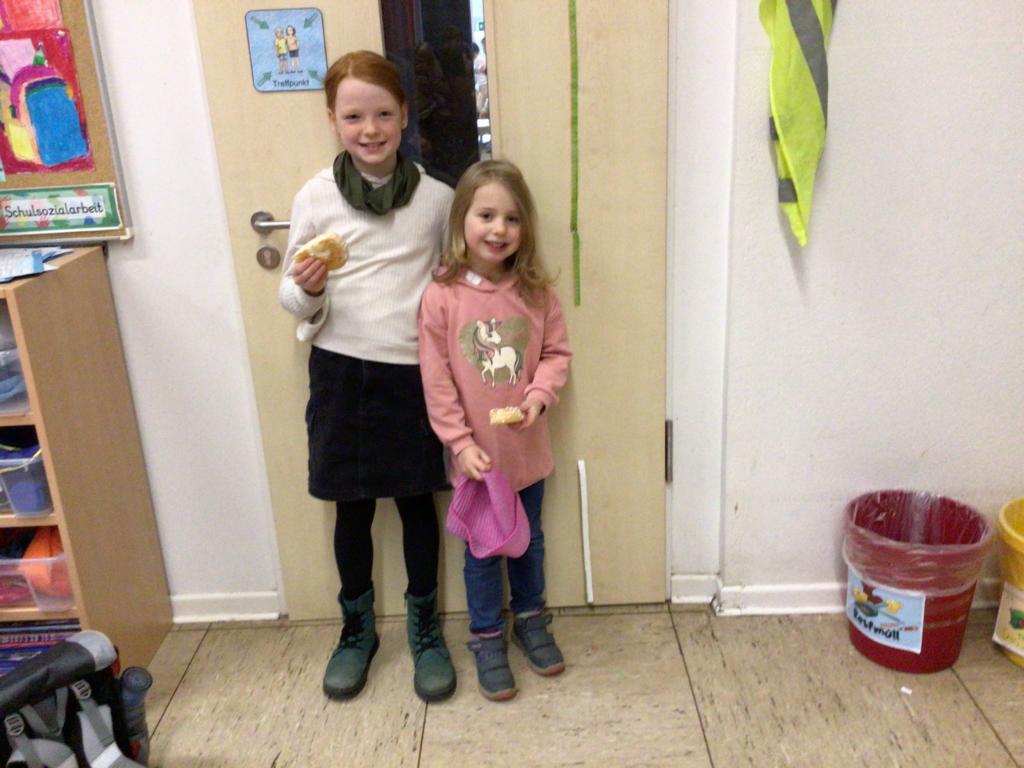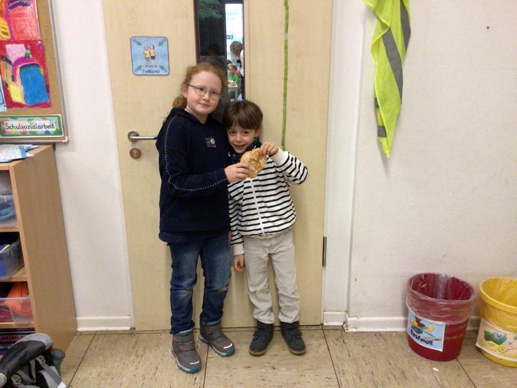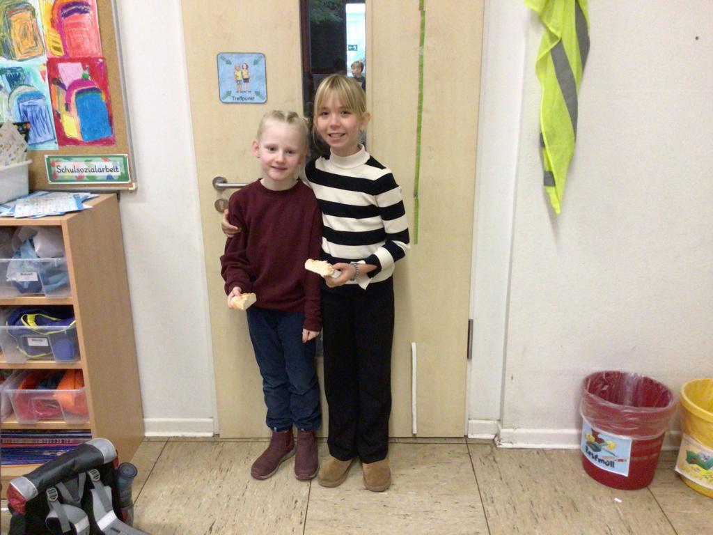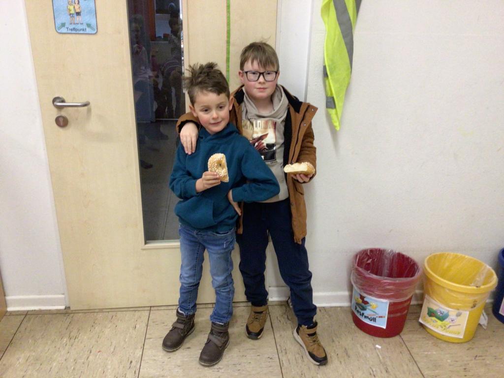 In der Schule gab es Martinsbrezel. Unsere Paten waren bei uns und wir haben die Brezel mit ihnen geteilt.