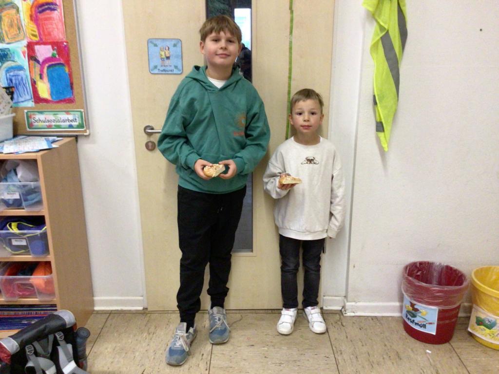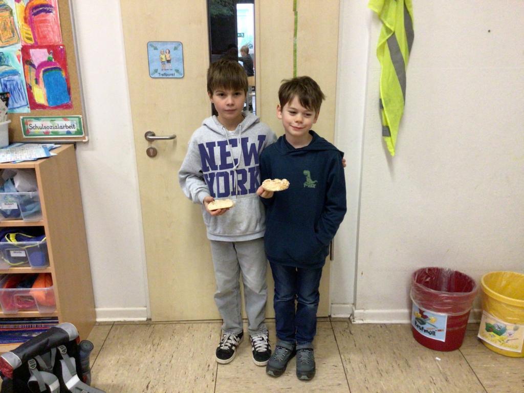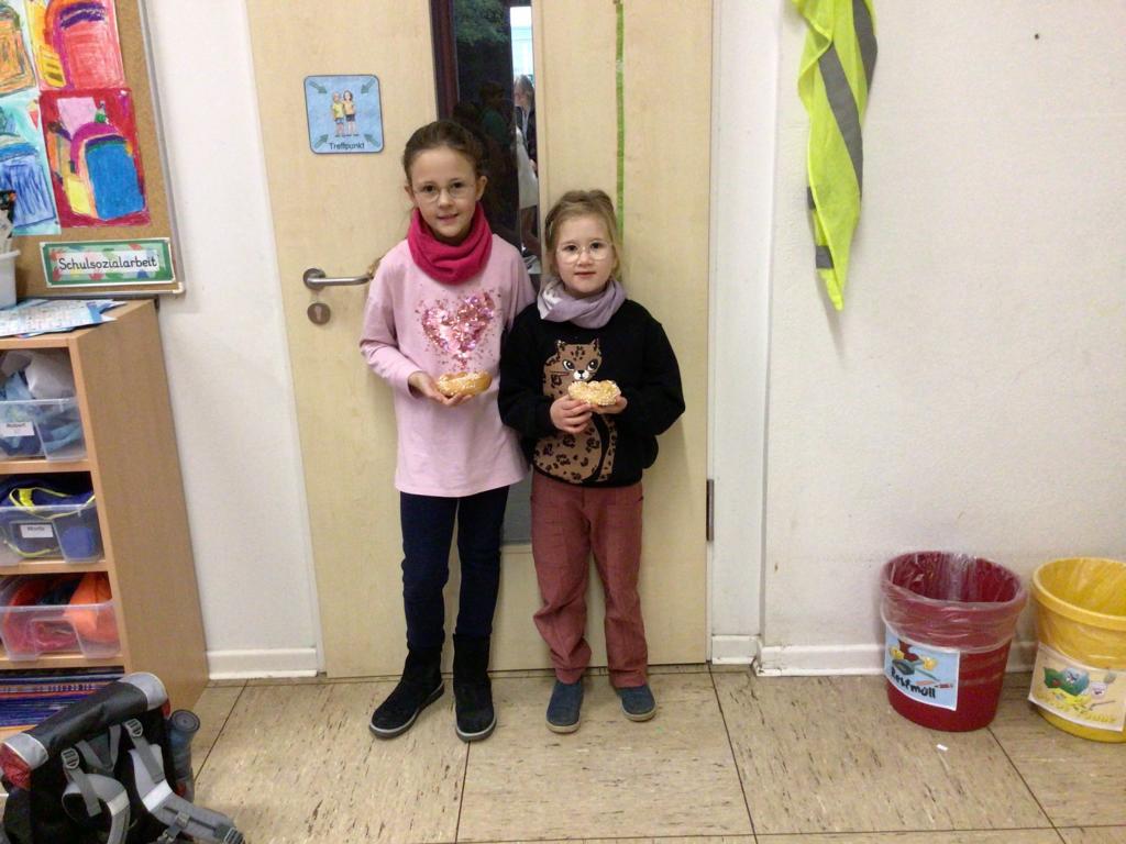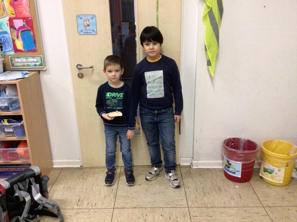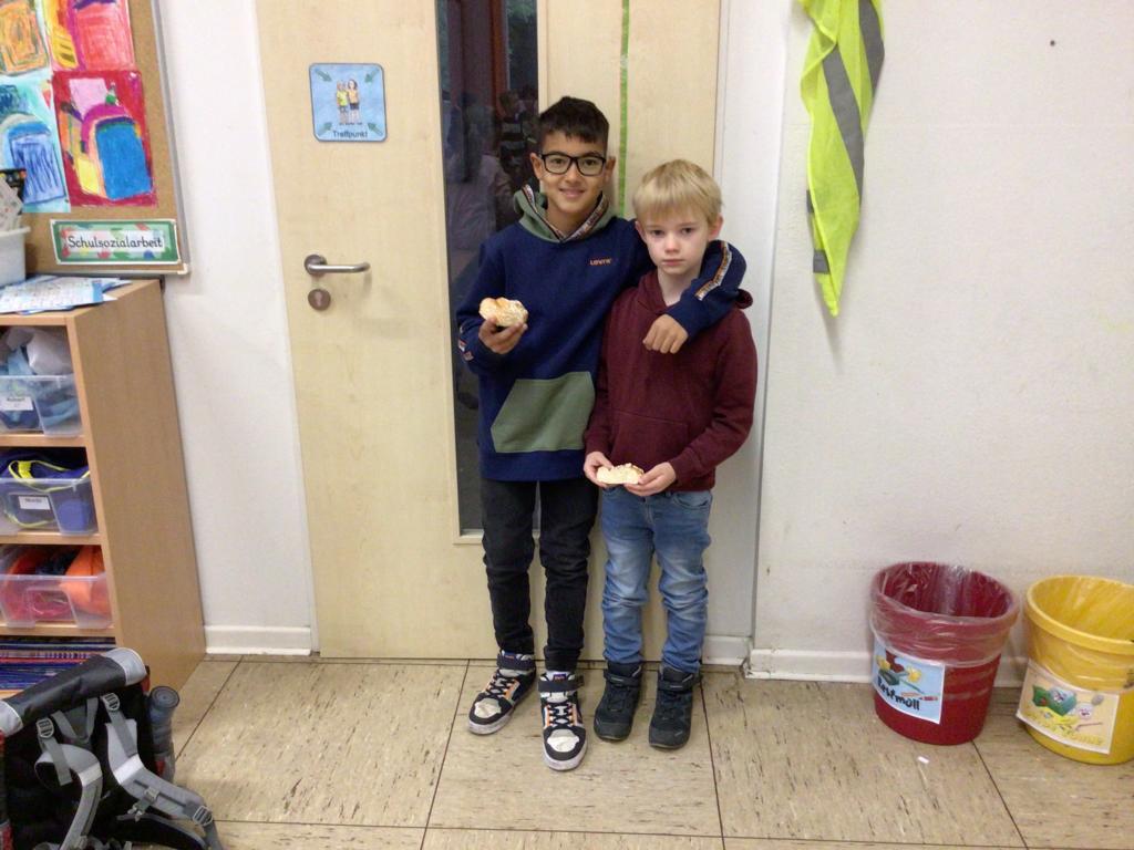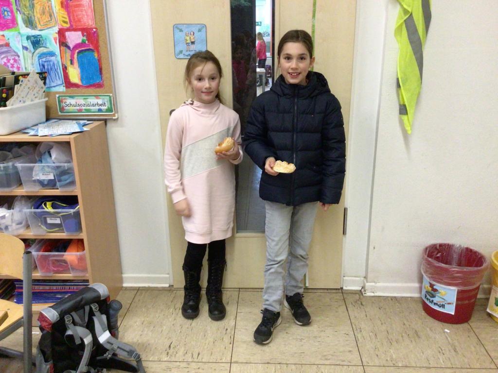 In der Schule gab es Martinsbrezel. Unsere Paten waren bei uns und wir haben die Brezel mit ihnen geteilt.