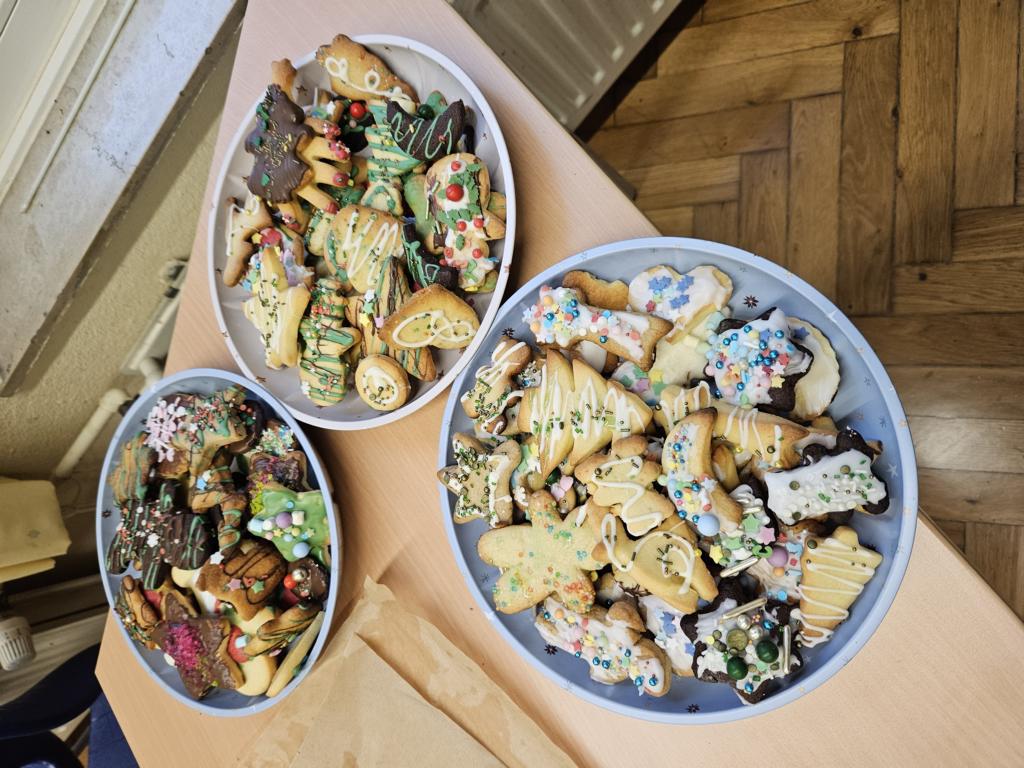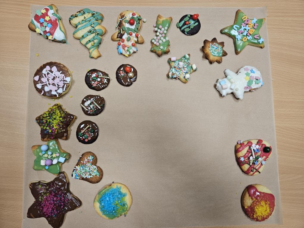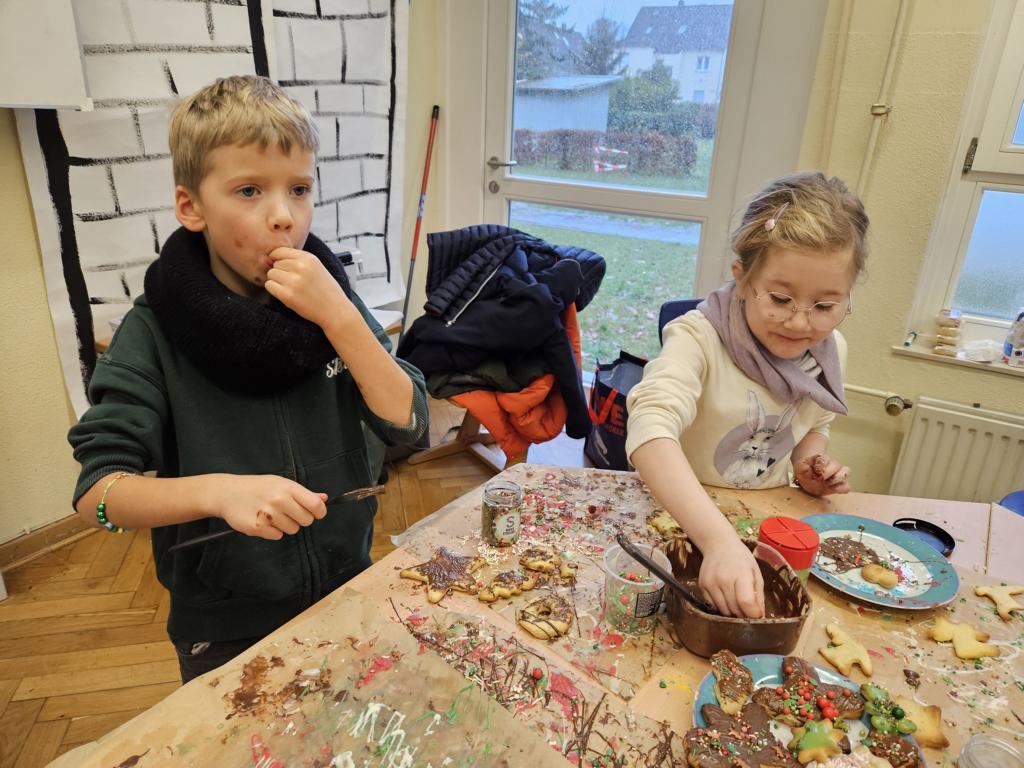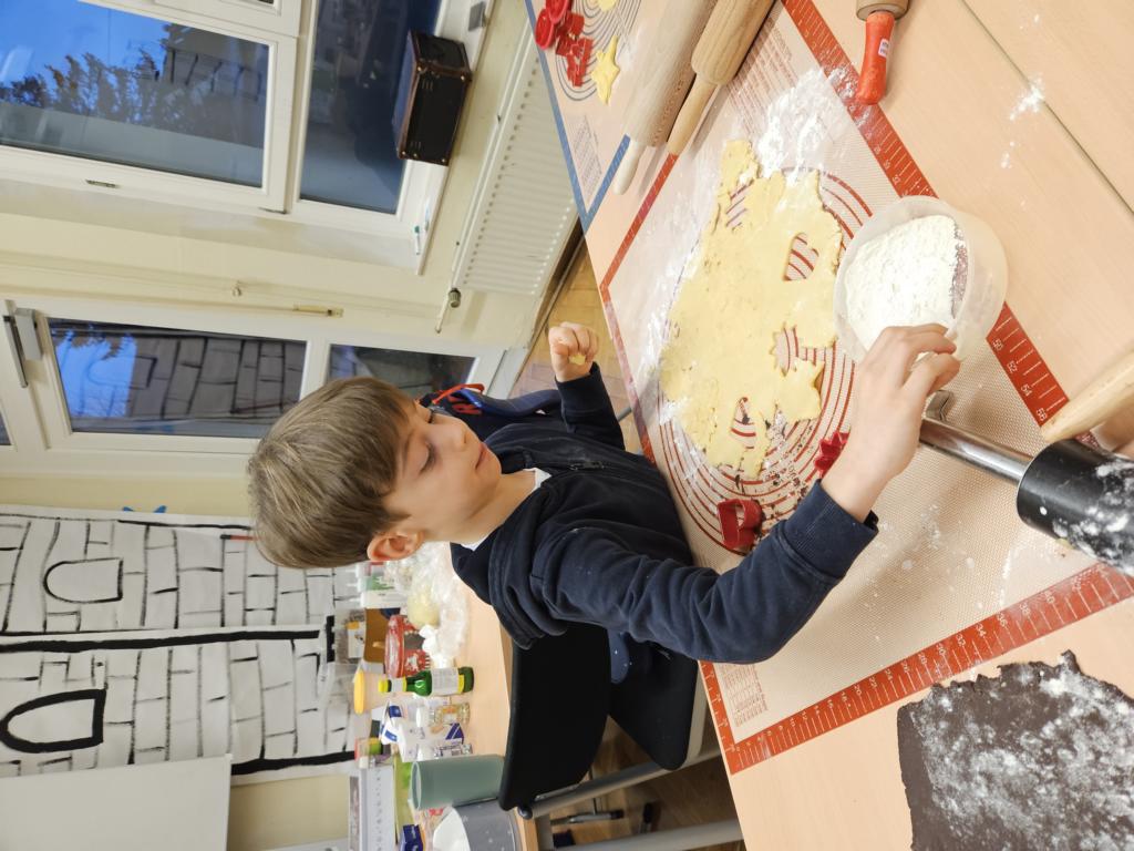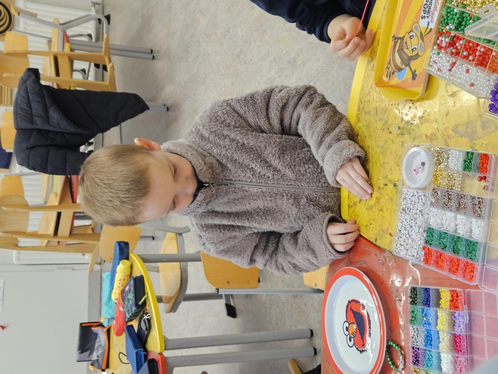 Vier unterschiedliche Aktionen konnten die Kinder in kleinen Gruppen erleben. An einer Station haben die Kinder aus Transparentpapier leichtende Sterne, Schneemänner oder Tannenbäume für die Klassenfenster gezaubert. In einer anderen Gruppe konnten Ketten aus vielen Perlen, Steinen, Sternen, Buchstaben usw. erstellt werden. An einer dritten Station haben die Kinder alles rund um das Backen erlebt, wobei hier kräftig Teig und Kekse genascht werden konnten. An der vierten Station haben die Kinder einen Teil der Geschichte vom Weihnachtszesel gehört und dazu musiziert und gemalt. Zum Schluss durfte jedes Kind einen kleinen Nikolaus mit nach Hause nehmen.