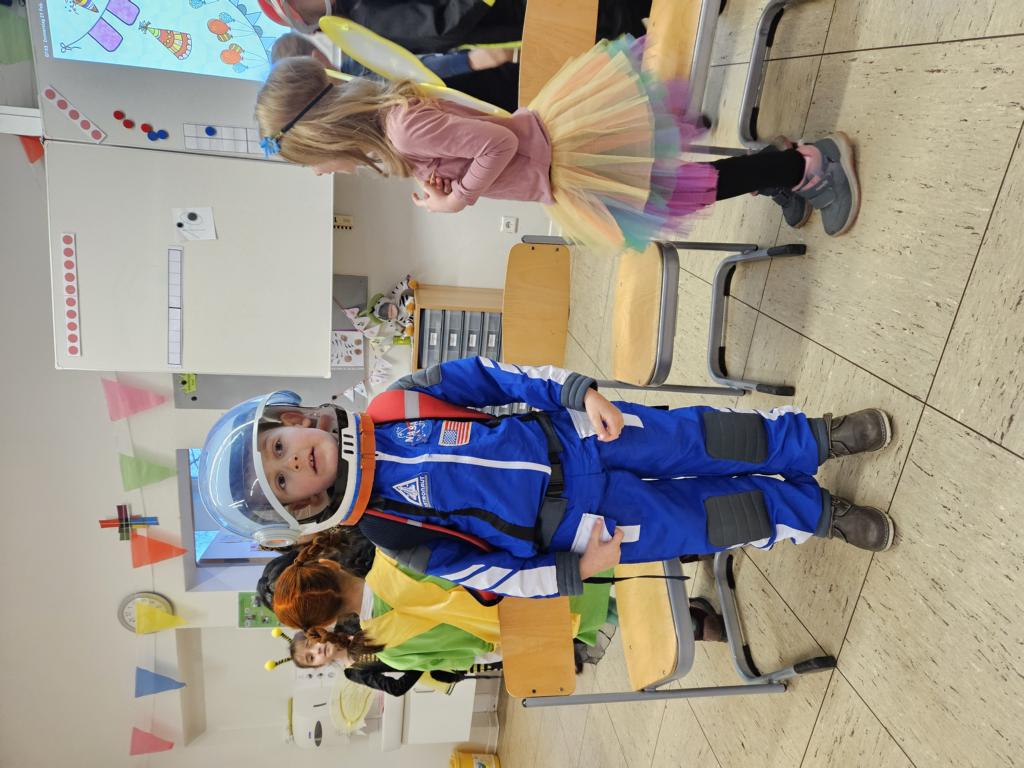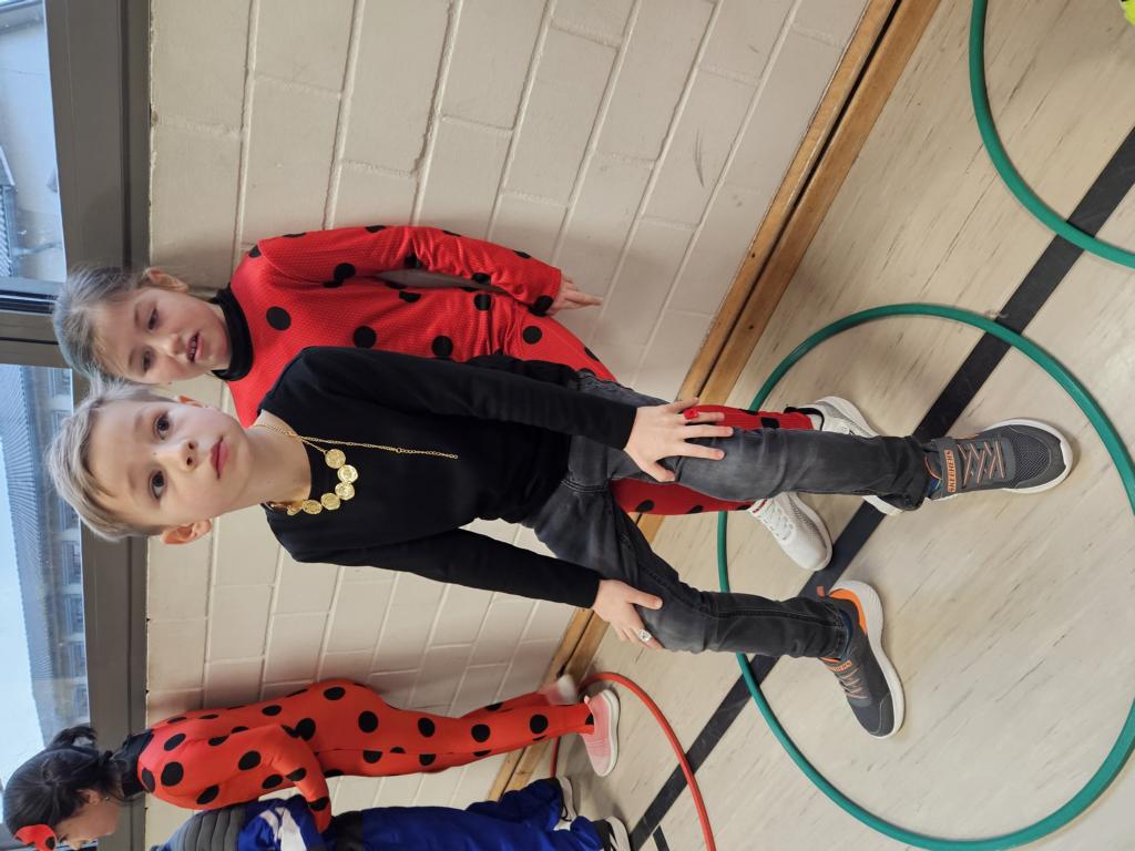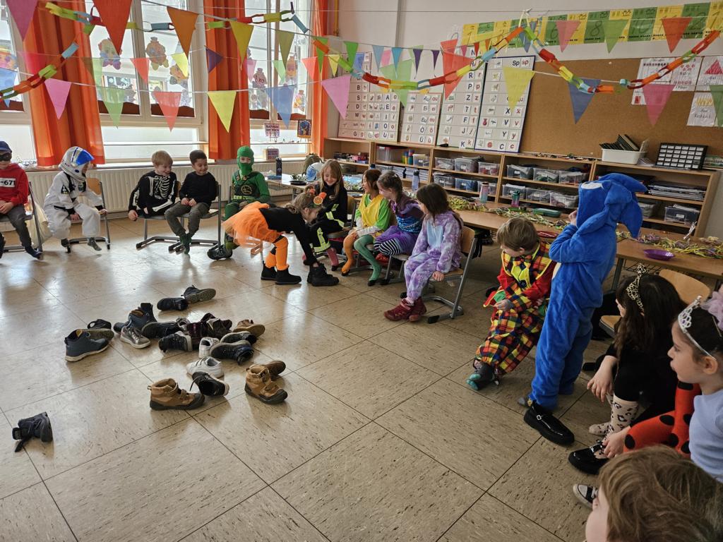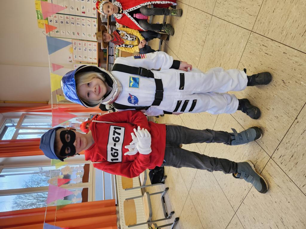 Bunt und lustig ging es heute, an Weiberfastnacht zu. Die Schultaschen blieben an diesem Tag zu Hause. Statt dessen kamen alle verkleidet in die Schule. Viele tolle Kostüme konnten wir entdecken.