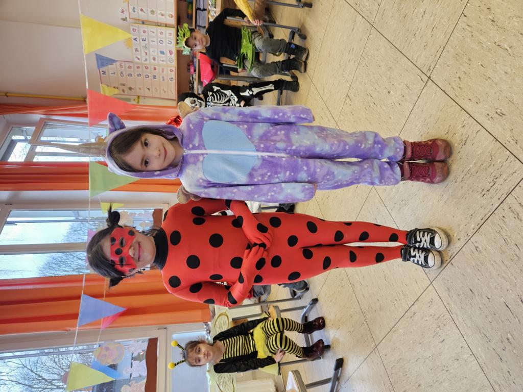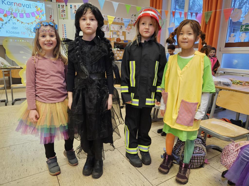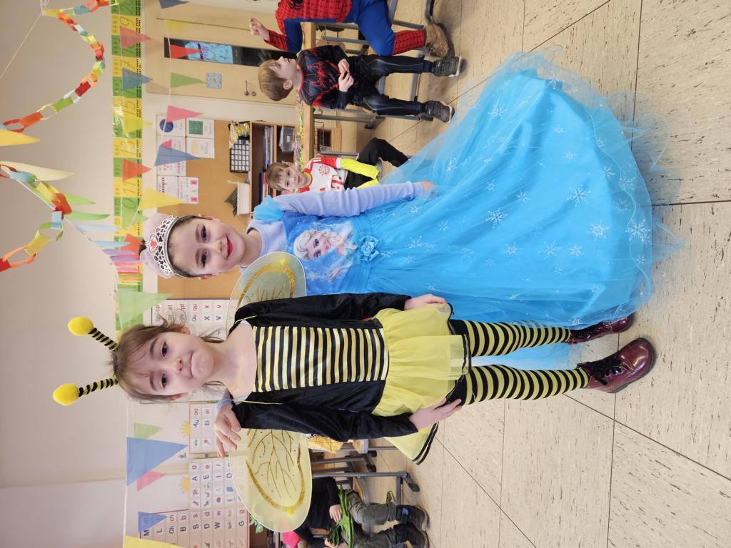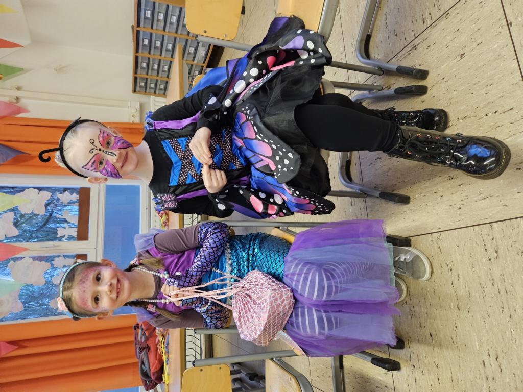 Bunt und lustig ging es heute, an Weiberfastnacht zu. Die Schultaschen blieben an diesem Tag zu Hause. Statt dessen kamen alle verkleidet in die Schule. Viele tolle Kostüme konnten wir entdecken.