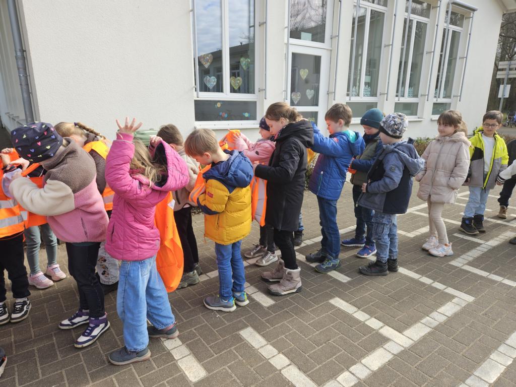 In unseren ersten Klassen geht es derzeit um das Thema Müll und Umweltschutz. Um auch praktisch tätig zu werden, haben wir mit Unterstützung von Frau Warnicke vom ASP Paderborn einen Müllsammelspaziergang gemacht.