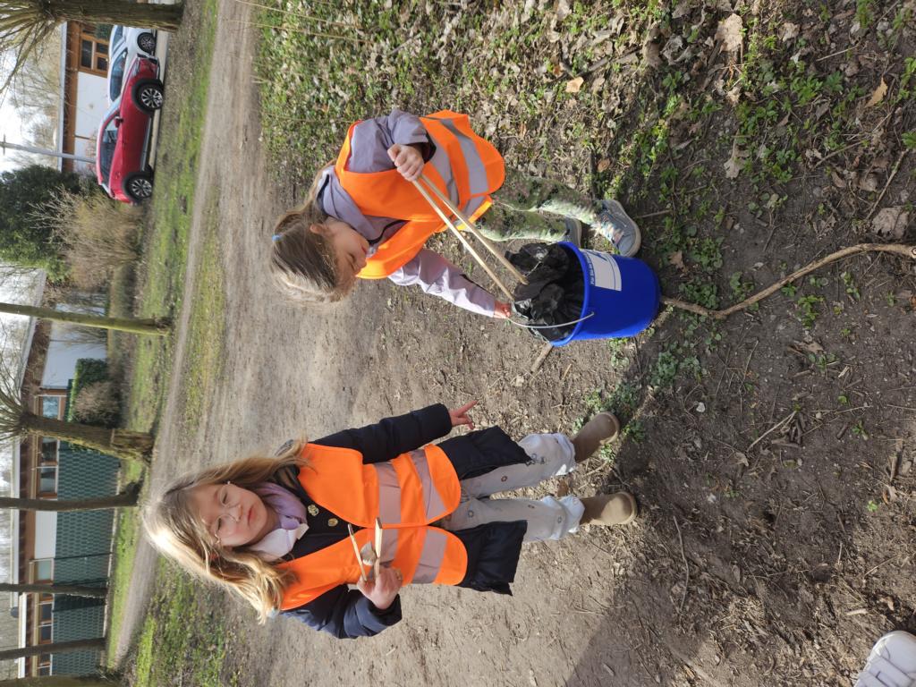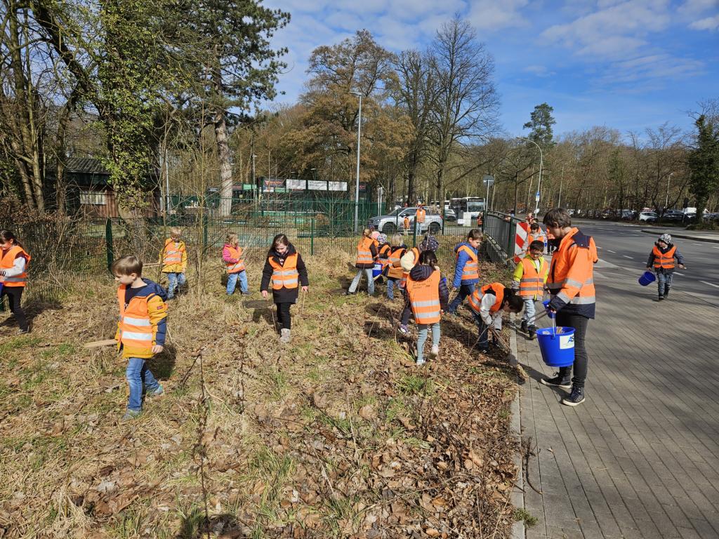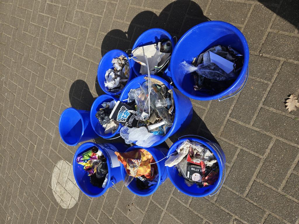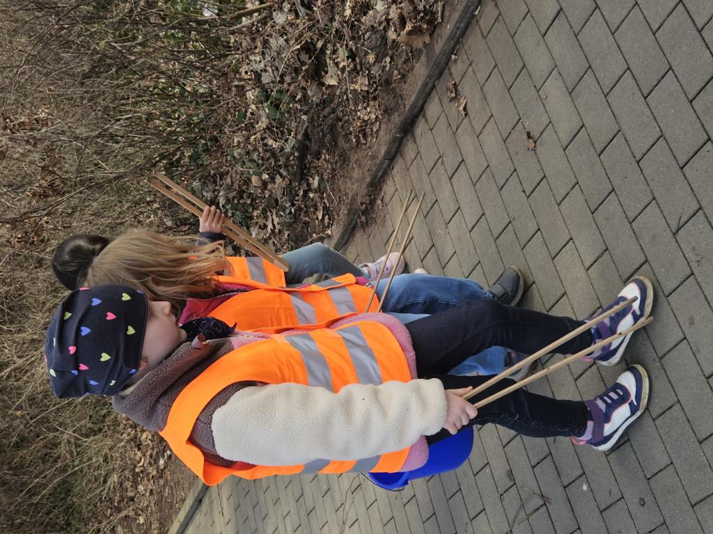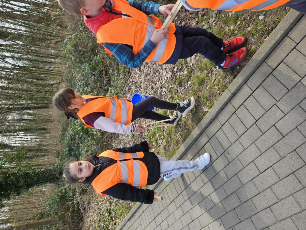 Ausgestattet mit Eimern und Zangen machten wir uns auf den Weg in die Umgebung unserer Schule, um gemeinsam Müll zu sammeln.