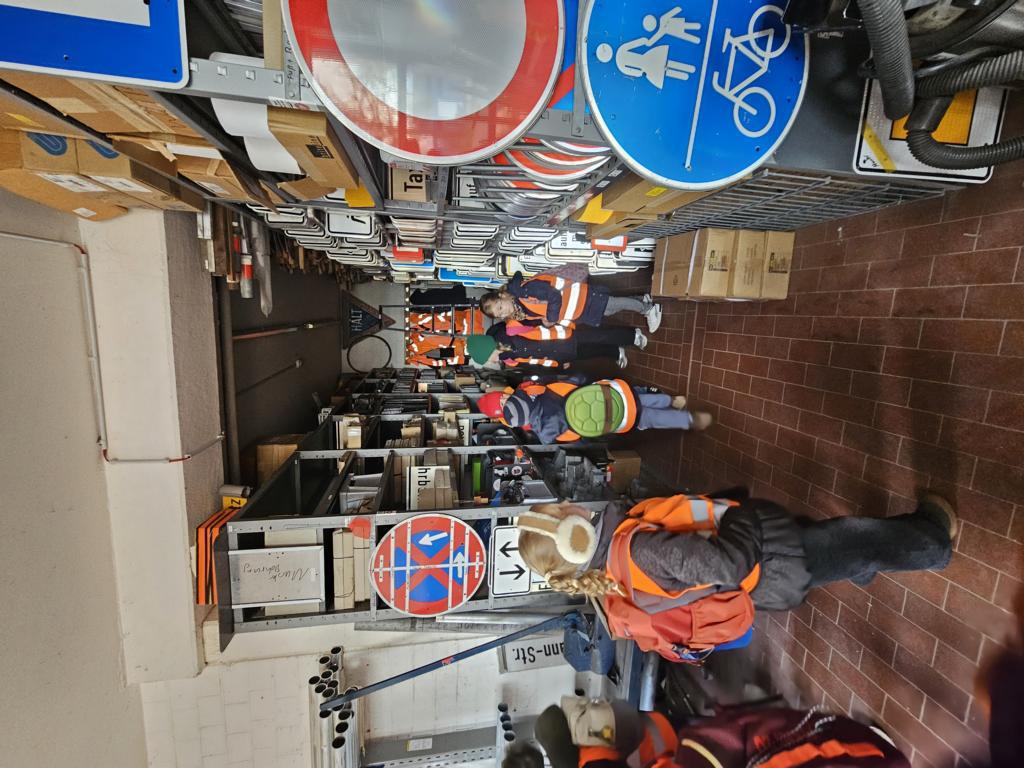 Zuerst durften wir selbst verschiedene Müllarten trennen – gar nicht so einfach! Danach warfen wir einen Blick in die Schilderwerkstatt. Dort stapelten sich unzählige Schilder, die überall in der Stadt gebraucht werden. Besonders spannend war unser Stopp bei „Tonne Toni“. Die sprechende Mülltonne war ziemlich schlecht gelaunt – kein Wunder, denn jemand hatte falschen Müll hineingeworfen! Gemeinsam halfen wir, den Müll richtig zu sortieren: Batterien gehören nicht in den Restmüll, weil sie Brände im Müllwagen verursachen können. Auch Handys oder CDs haben dort nichts zu suchen. Als alles richtig sortiert war, hatte Tonne Toni wieder beste Laune!