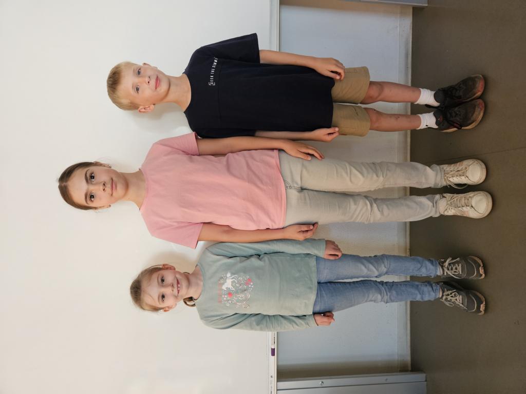 Unsere erste Station war das Seilspringen. Danach konnten wir noch Drehwurf, Standweitsprung und Sprint schaffen, bevor es stark regnete. Leider mussten wir die letzten beiden Stationen auslassen. Bestimmt holen wir die noch vor den Sommerferien nach.
