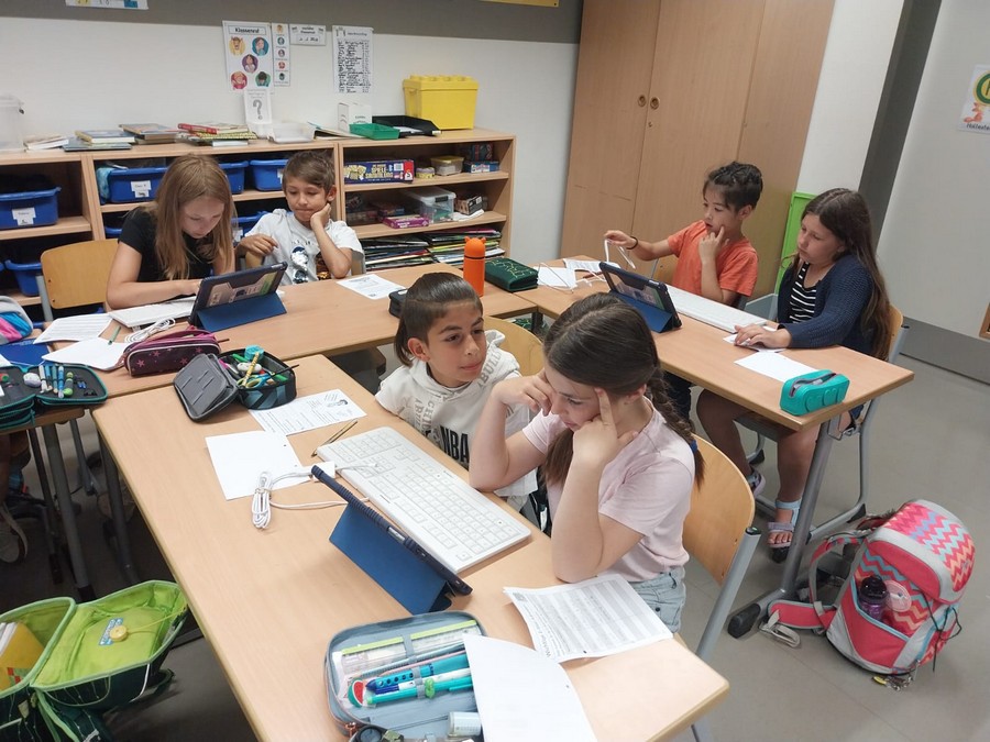 Dann wurde es spannend, denn wir haben anschließend noch gelernt, wie wir E-Mails schreiben. Dazu haben wir immer zu zweit an einem Ipad mit Tastatur gearbeitet. Das war gar nicht so leicht, denn wir