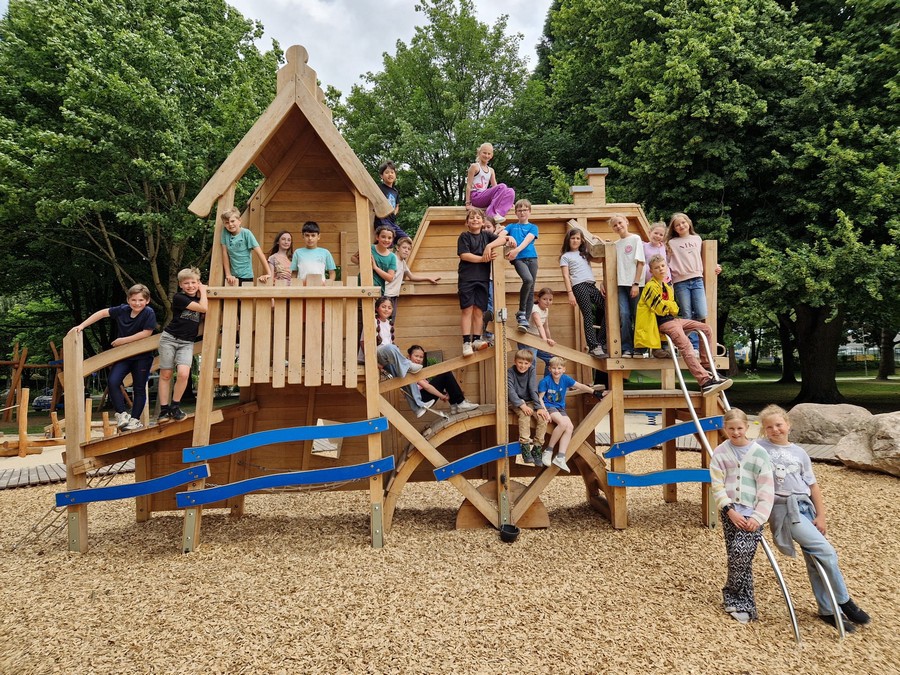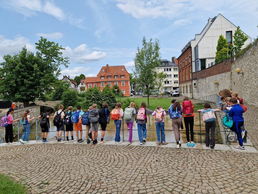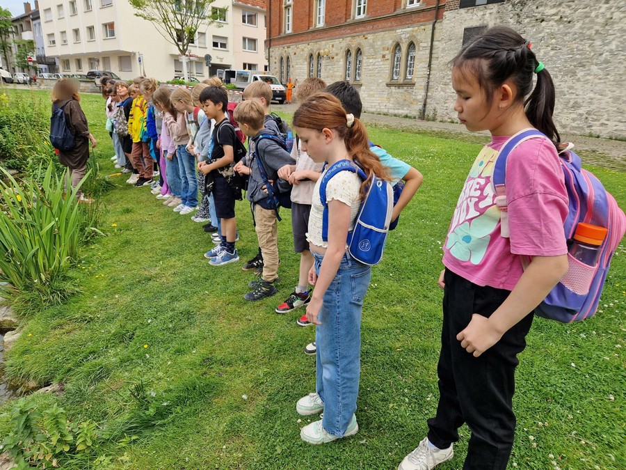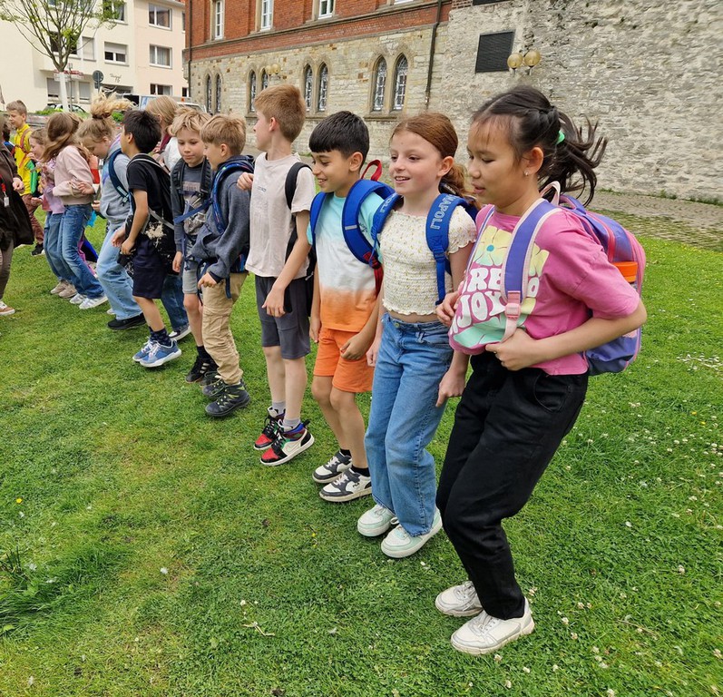 Am 04.10.24 stand für alle Klassen die alljährliche Sternwanderung auf dem Programm. Von der Schule aus wanderten die vier Jahrgänge zu unterschiedlichen Spielplätzen. Die vierten Klassen machten sich auf den Weg nach Schloß Neuhaus. Dort liefen sie zum Wasserspielplatz. Es wurde fröhlich miteinander gespielt, gelacht und gefrühstückt. Danach machten sich die Kinder auf den Rückweg, den alle erfolgreich meisterten.