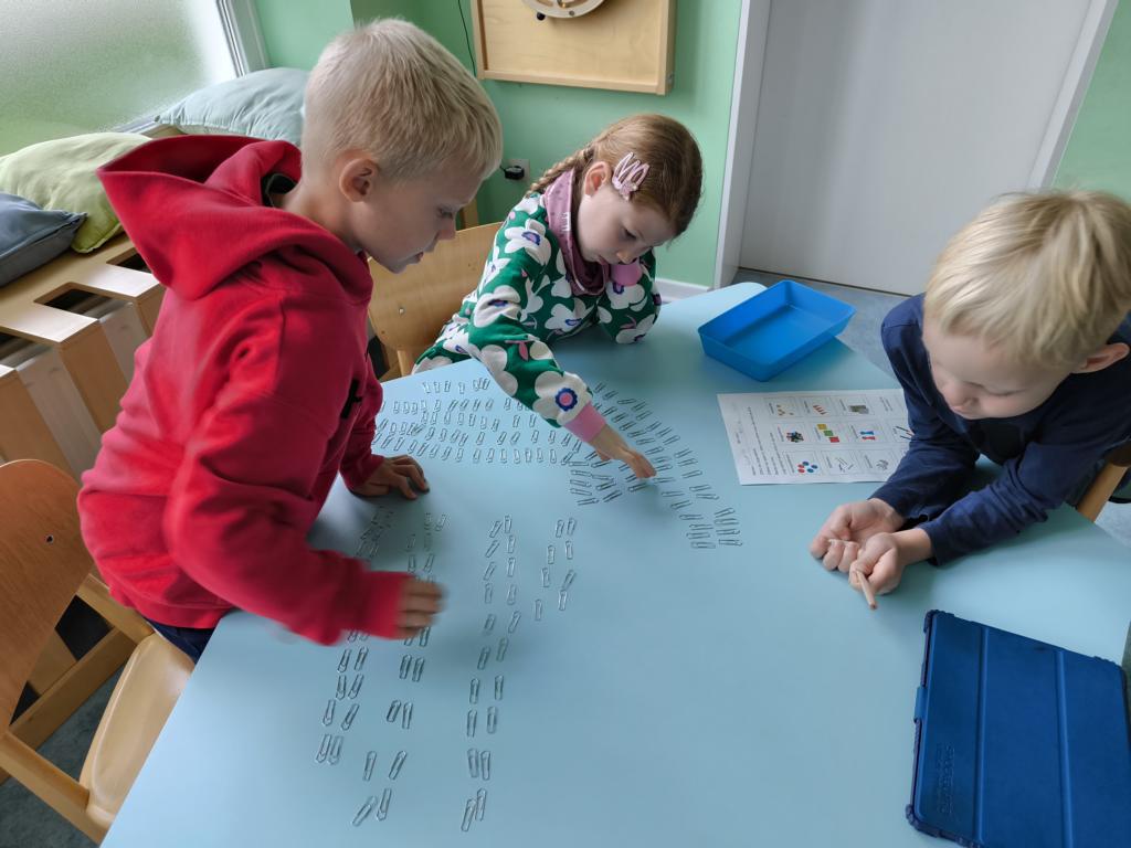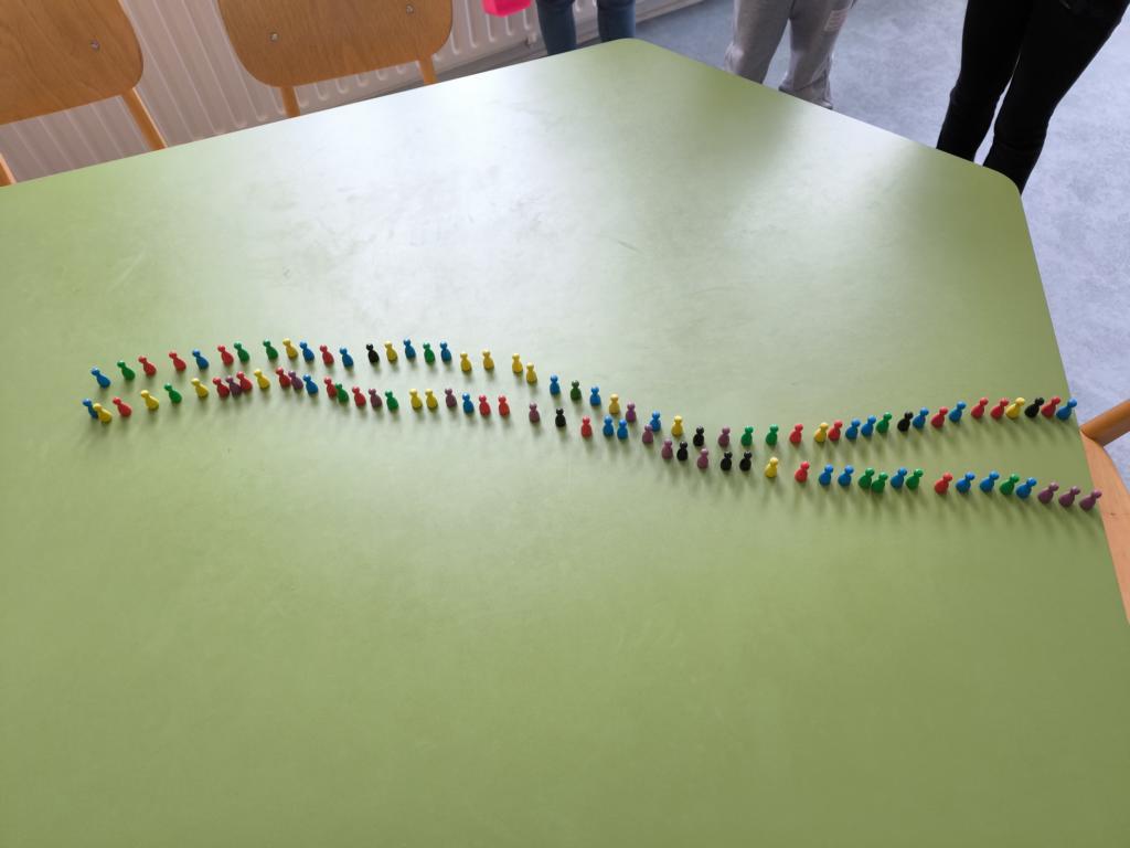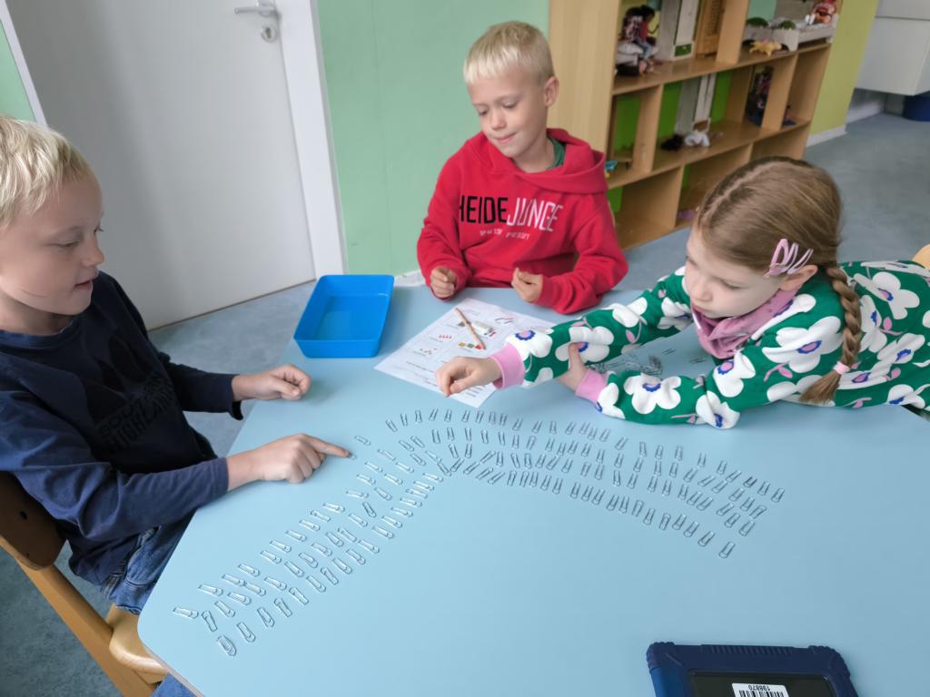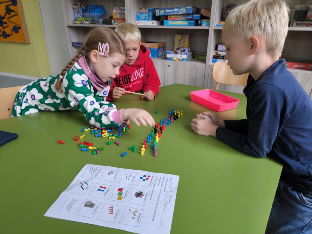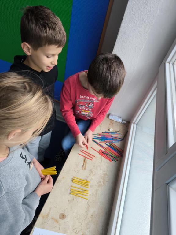 Heute haben wir in kleinen Gruppen verschiedene Gegenstände gezählt. Aber zählen ist ganz schön mühselig, wenn es viele Dinge sind. Deshalb sollten wir überlegen: Wie kannst du die Gegenstände so ordnen, dass man schnell erkennen kann, wie viele es sind?