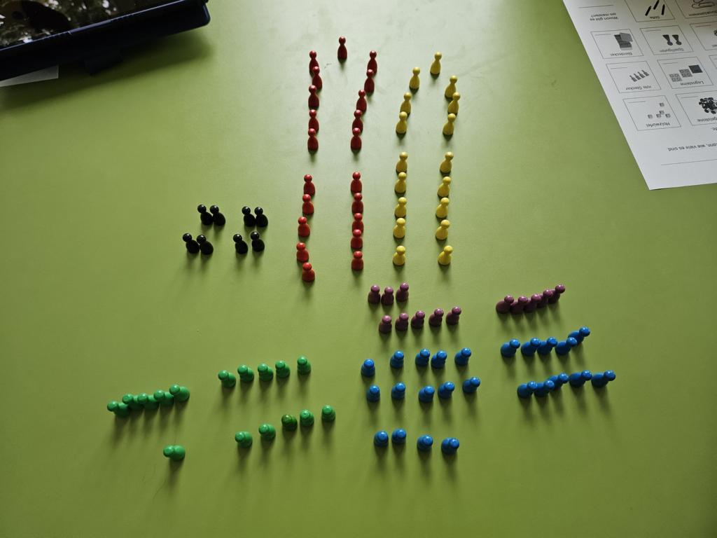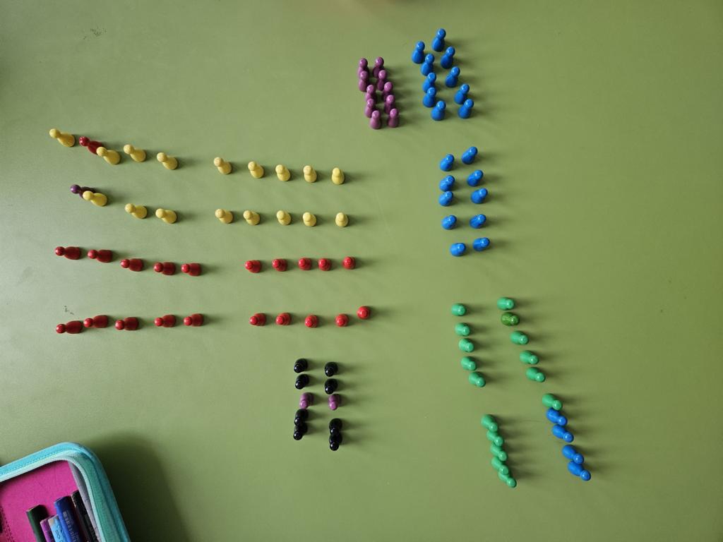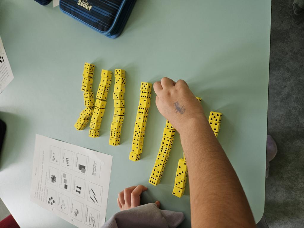 Heute haben wir in kleinen Gruppen verschiedene Gegenstände gezählt. Aber zählen ist ganz schön mühselig, wenn es viele Dinge sind. Deshalb sollten wir überlegen: Wie kannst du die Gegenstände so ordnen, dass man schnell erkennen kann, wie viele es sind?