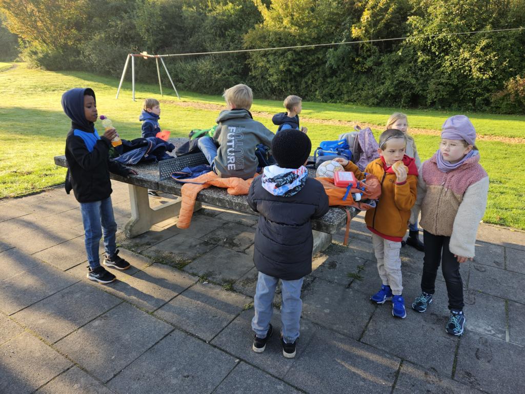 Am Ziel angekommen, konnten wir uns kurz stärken. Frau Zacharias hat uns begrüßt uns wir sind zu unserem Klassenraum im Grünen gegangen. Dort hat sie mit uns einige Regeln besprochen.