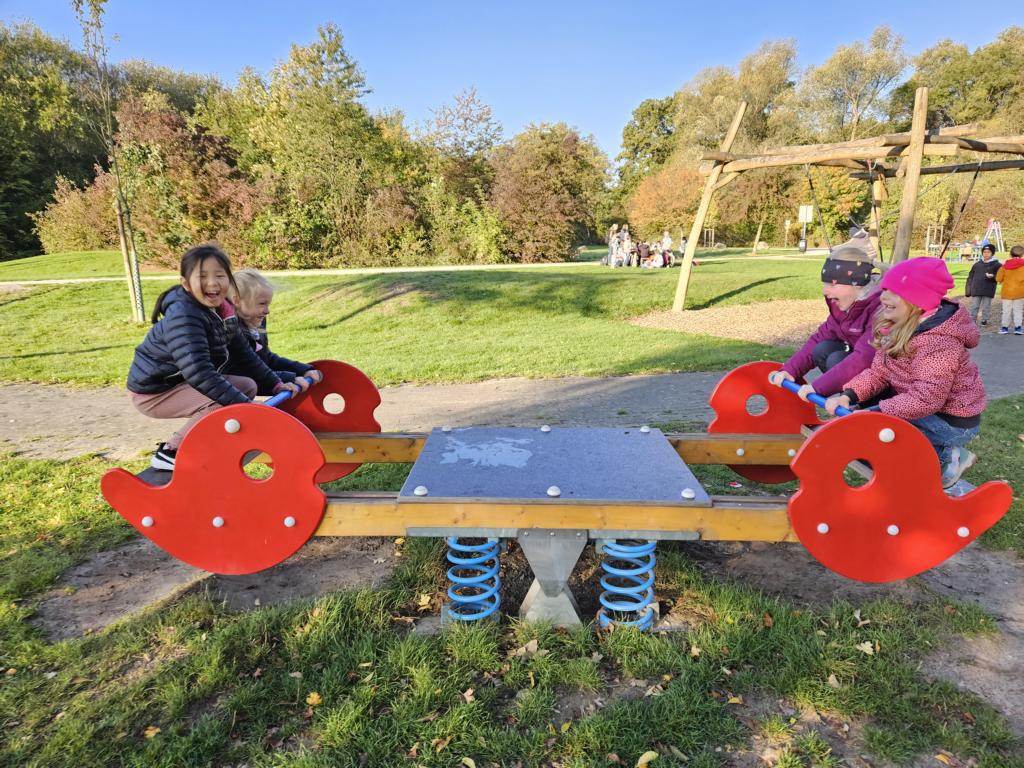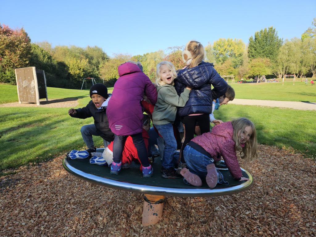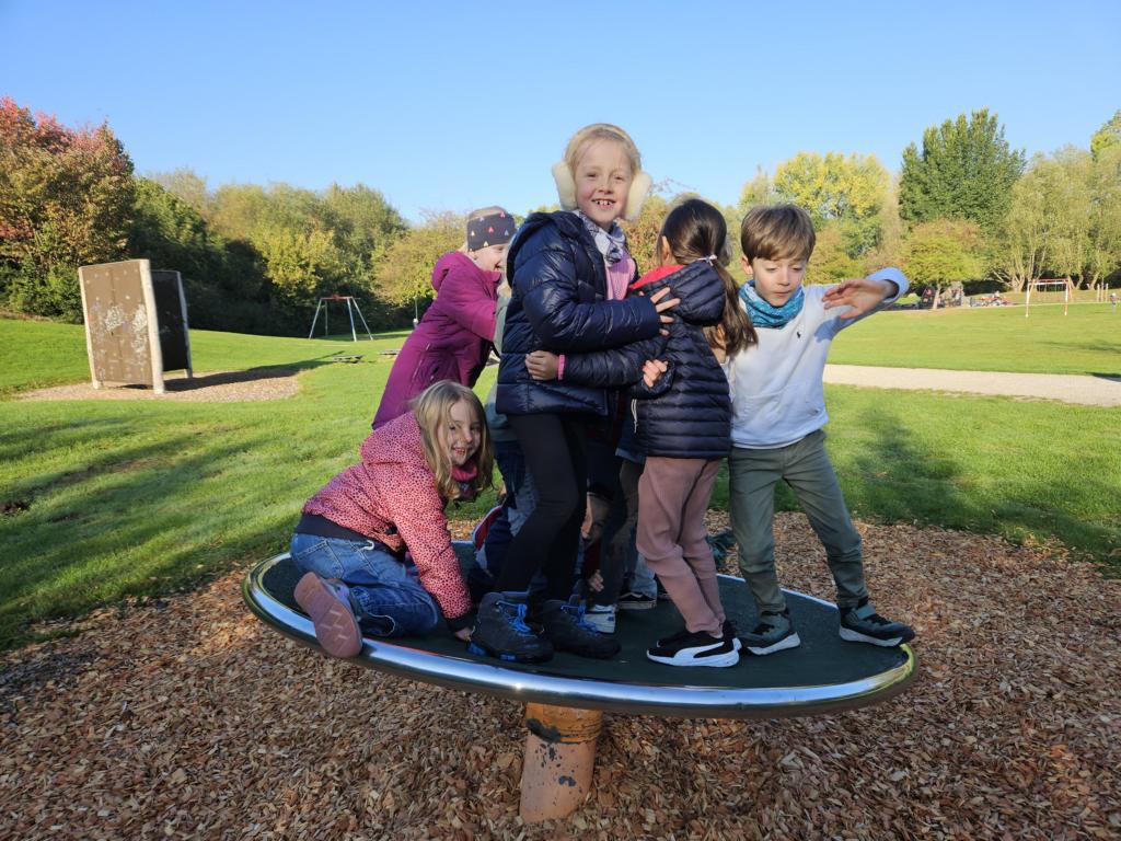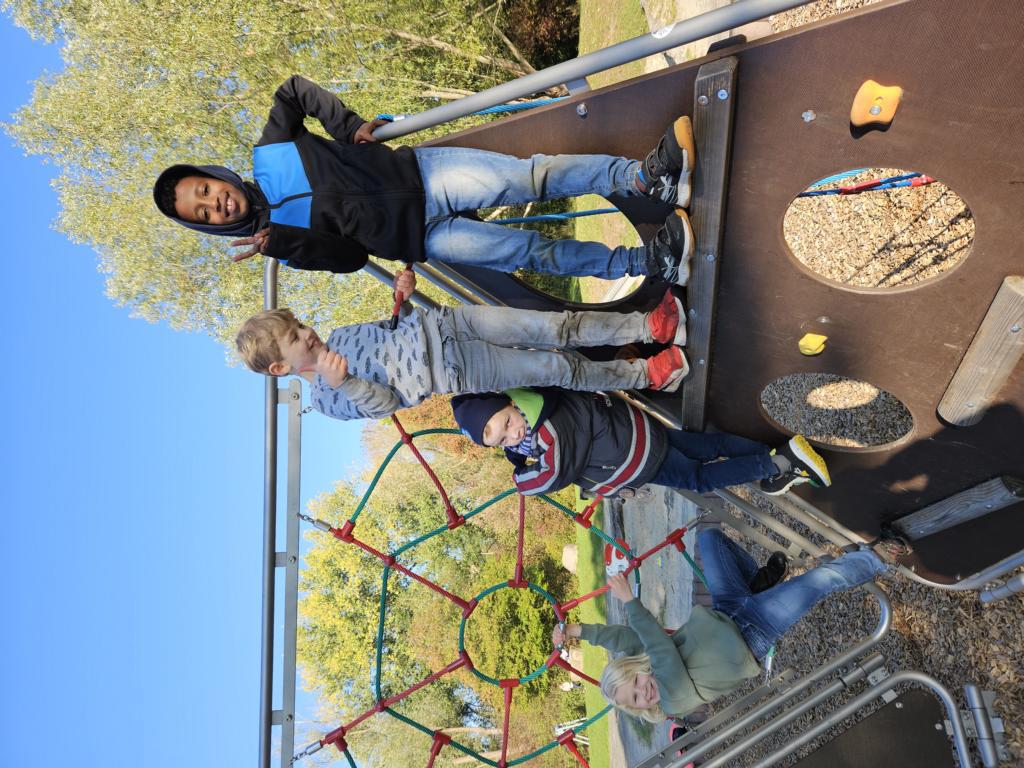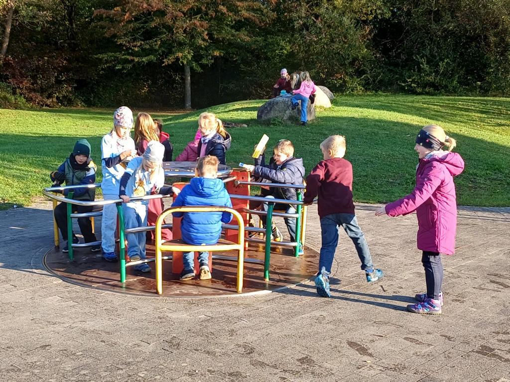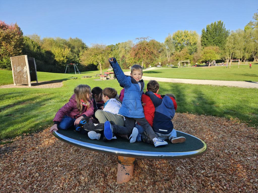 Am Donnerstag vor dem Feiertag sind die Klassen 2 zum Spielplatz am Tausendquell gewandert. Dort angekommen, konnten alle Kinder gemeinsam miteinander spielen. Es wurde geklettert, am Kreisel gedreht, in den Büschen geforscht und Fußball gespielt. Die Sonne bereitete uns einen traumhaften Morgen und die Stimmung war bei allen Kindern ausgelassen. Es war ein toller Wandertag!