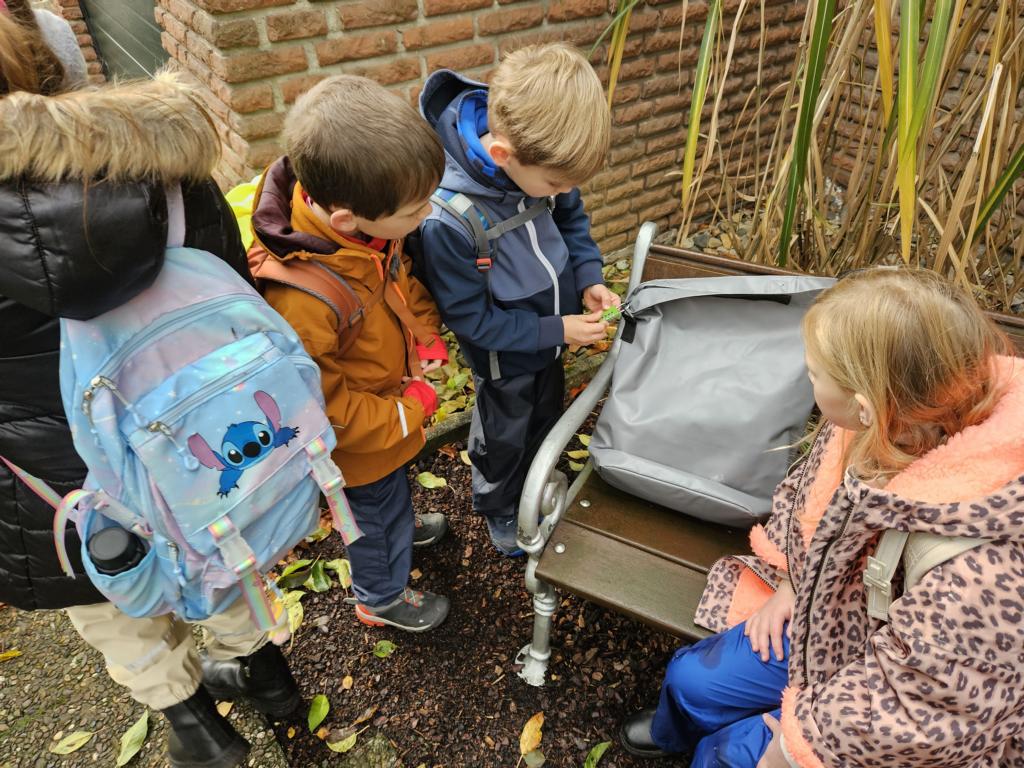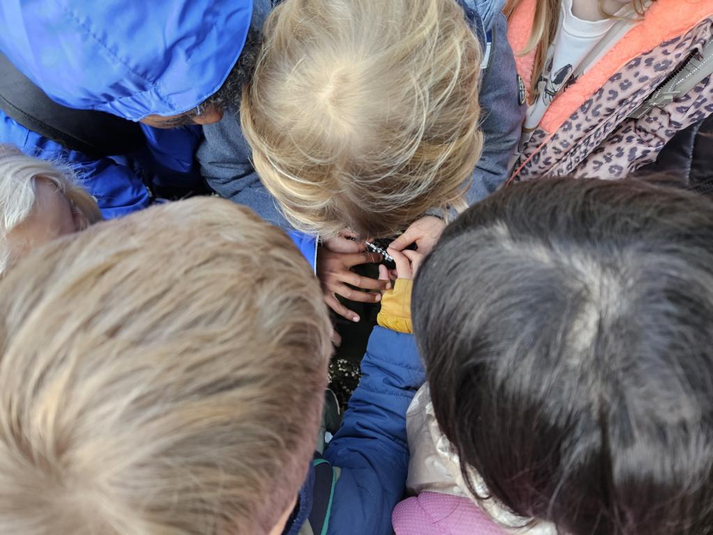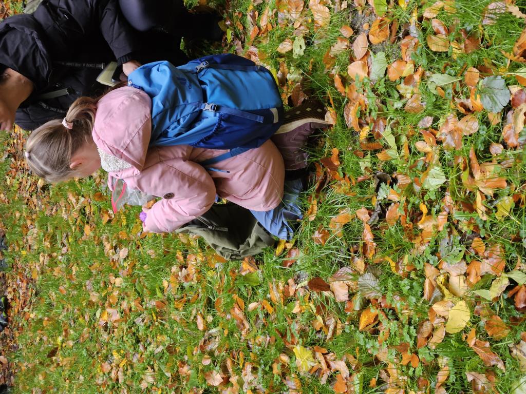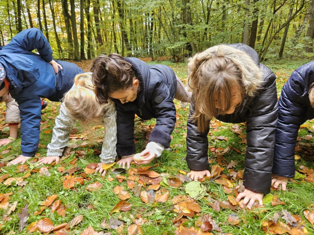 Nachdem wir nun unsere Augen für die Suche nach Tieren im Totholz vorbereitet hatten, ging es endlich los. Zu Zweit mit einem Behälter und einer Schaufel suchten wir kleine Tiere. Manche Kinder fanden es eklig auf diese kleinen Wesen zu treffen. Andere Kinder waren sehr interessiert und suchten mit viel Spaß nach Insekten, Schnecken, Spinnen oder Käfern.