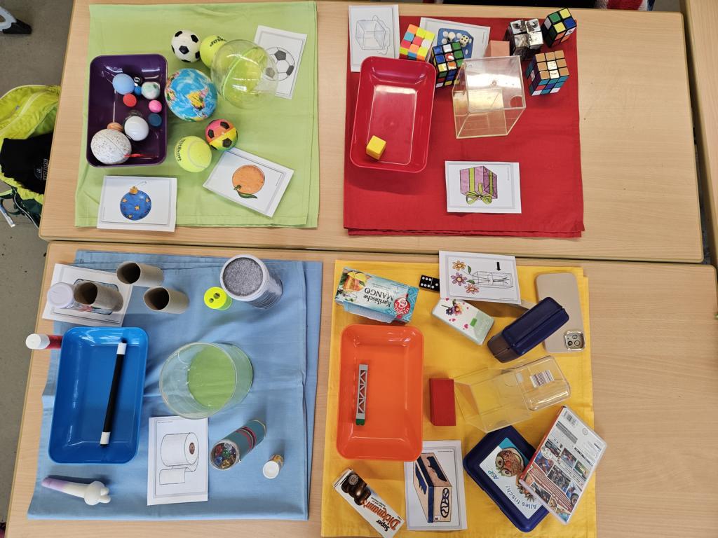 Im Mathematikunterricht lernen wir die geometrischen Körper kennen. Dazu gehören der Würfel, der Zylinder, der Quader und die Kugel.