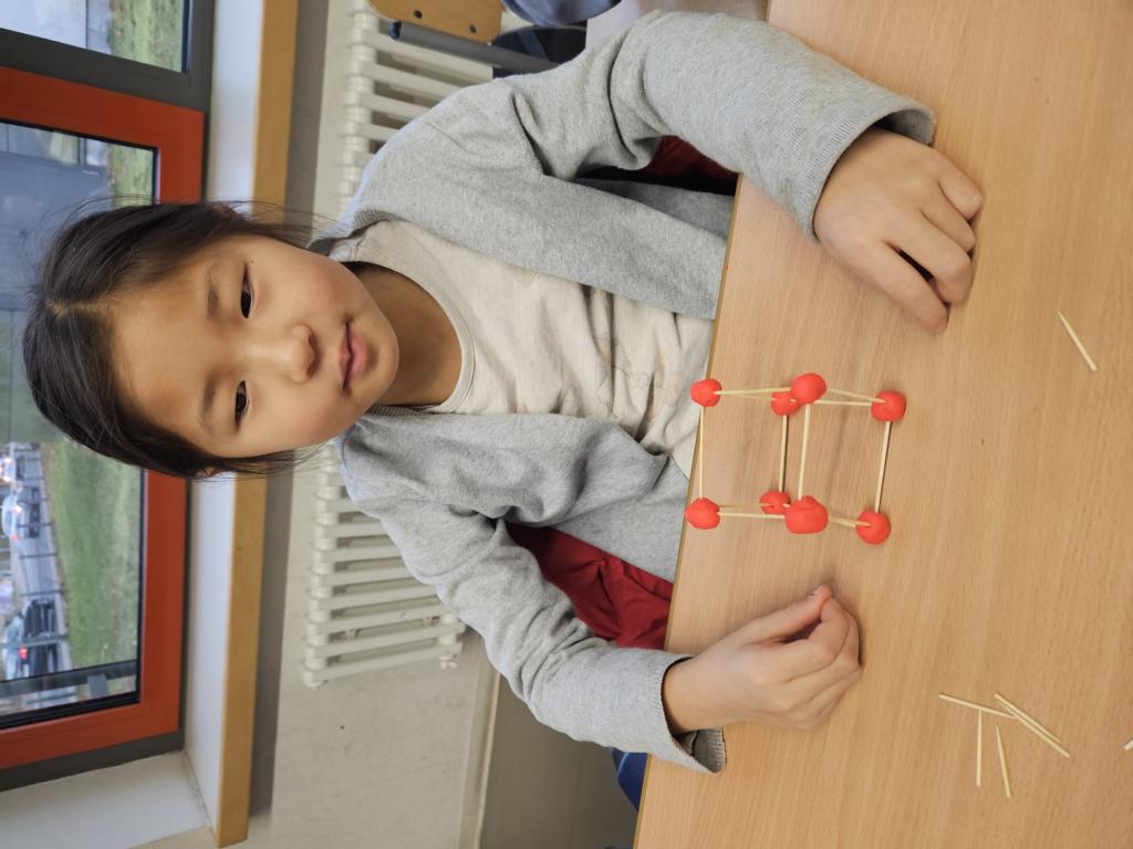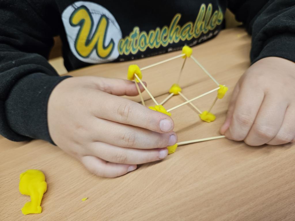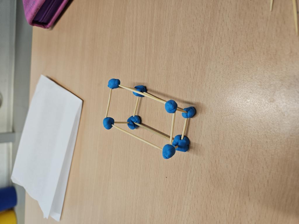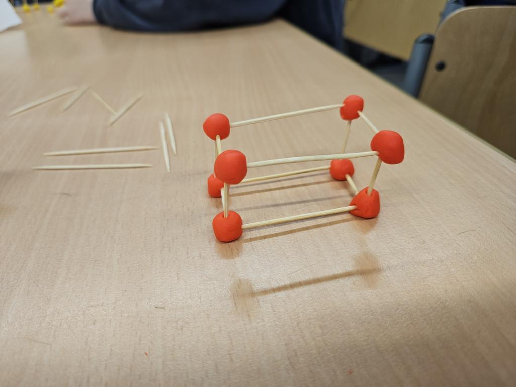 Wir haben die Körper in unserer Umwelt gesucht und viele Beispiel gefunden. Auch das Untersuchen der Körper auf ihre Flächen, Ecken und Kanten war für viele Kinder etwas Neues. Außerdem bauten wir Kantenmodelle aus Knete und Zahnstochern. Das haben wir prima hinbekommen und unser Wissen über den Quader und den Würfel vertieft.
