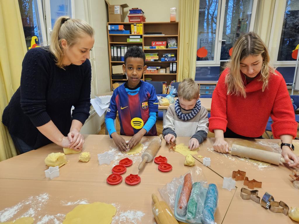 Am 26.11. fand der Weihnachtsprojekttag in unserer Klasse statt. Viele Eltern haben geholfen. Wir konnten an fünf Stationen etwas erleben. Es wurde gebacken, getanzt, musiziert und gebastelt. Für jeden war etwas dabei.