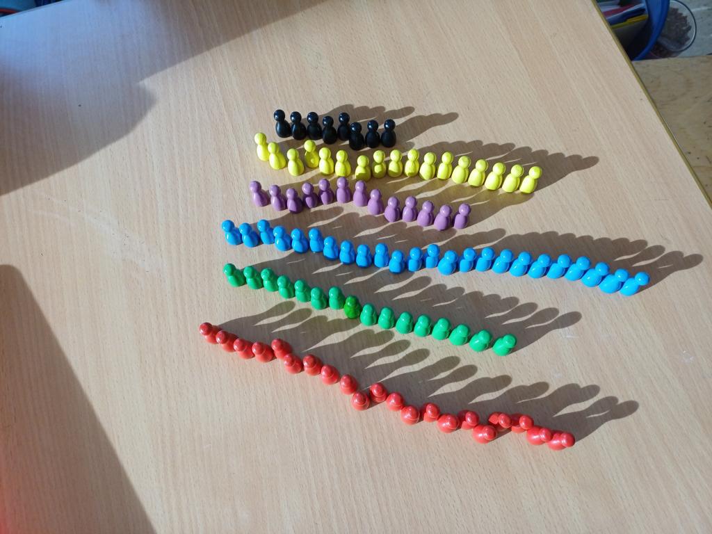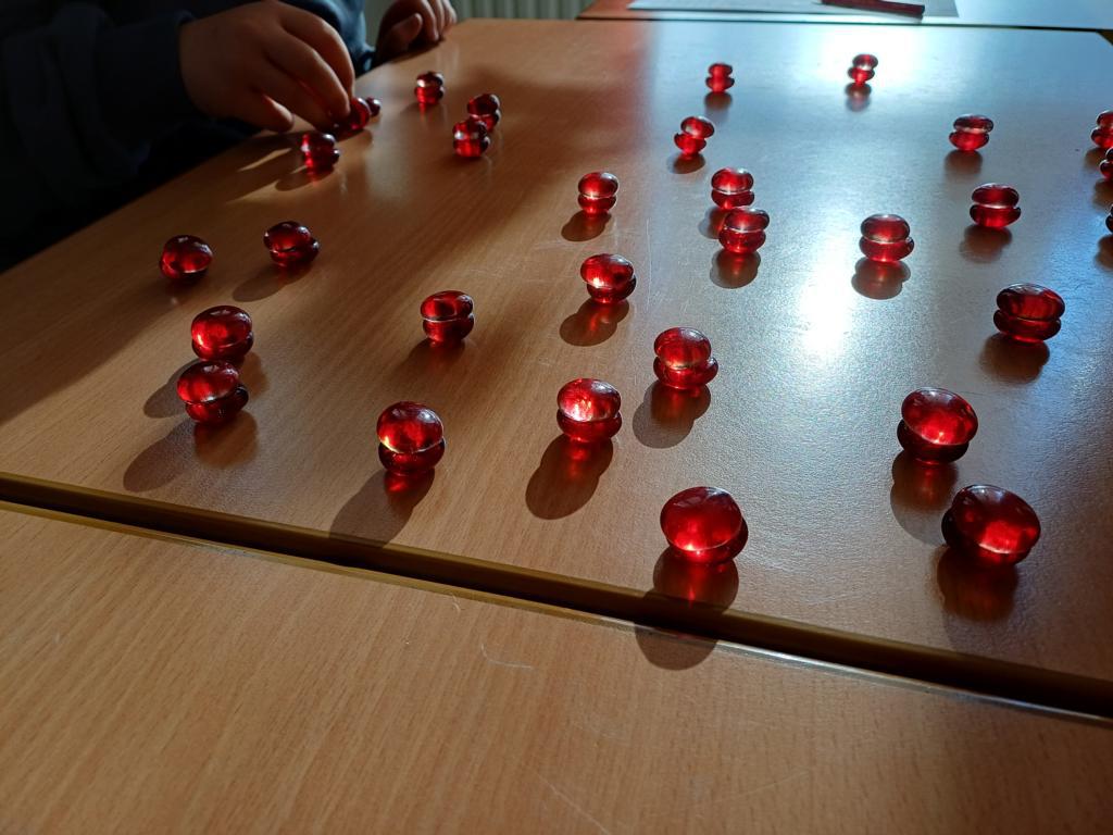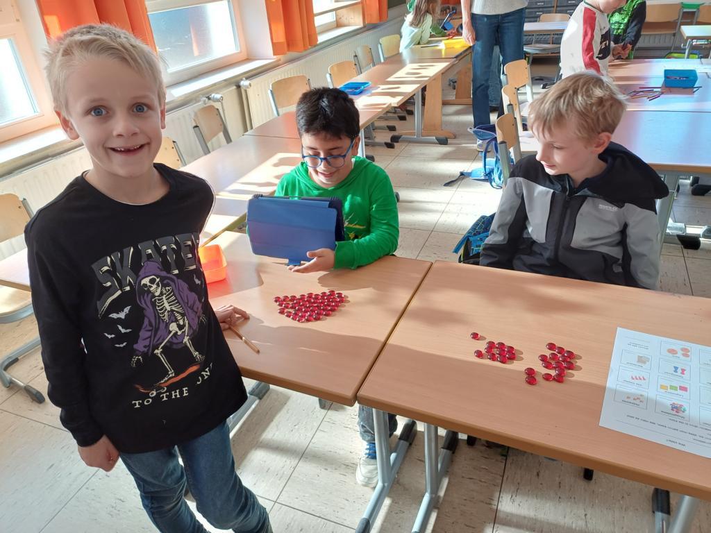 Heute haben wir in kleinen Gruppen verschiedene Gegenstände gezählt. Aber zählen ist ganz schön mühselig, wenn es viele Dinge sind. Deshalb sollten wir überlegen: Wie kannst du die Gegenstände so ordnen, dass man schnell erkennen kann, wie viele es sind?