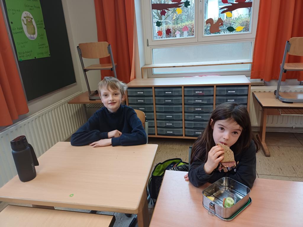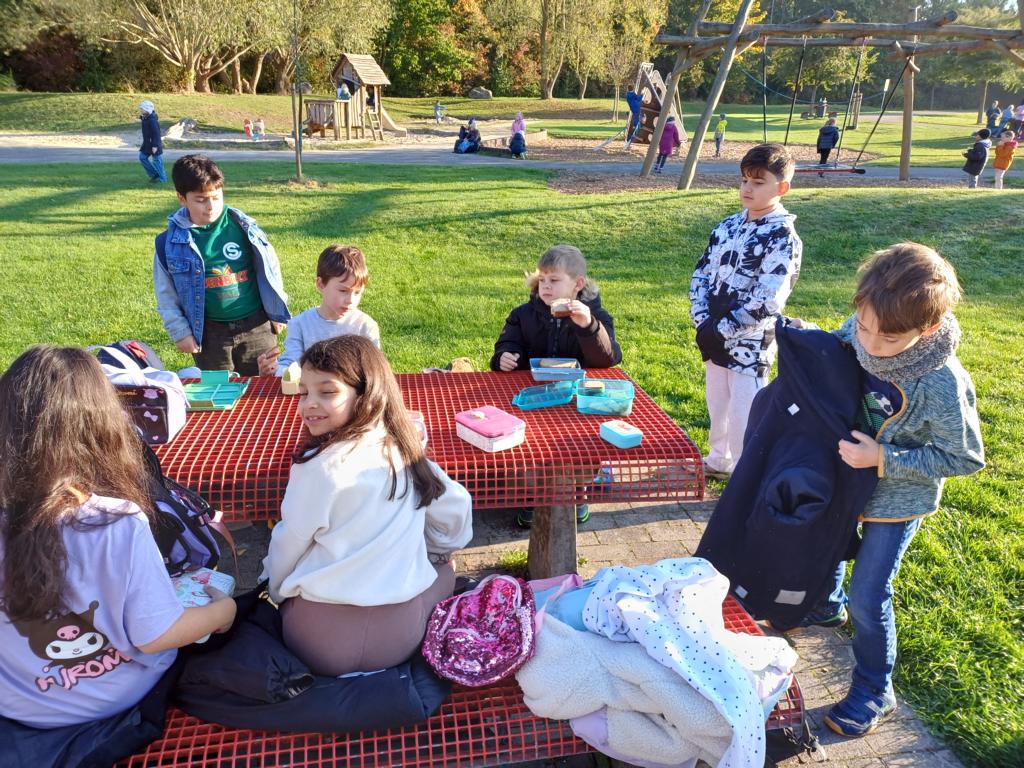 Am Ziel angekommen, konnten wir uns kurz stärken. Frau Zacharias hat uns begrüßt uns wir sind zu unserem Klassenraum im Grünen gegangen. Dort hat sie mit uns einige Regeln besprochen.