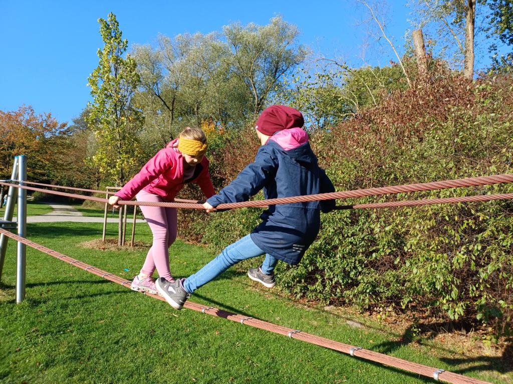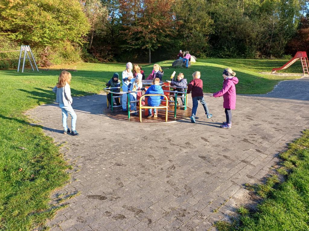 Am Donnerstag vor dem Feiertag sind die Klassen 2 zum Spielplatz am Tausendquell gewandert. Dort angekommen, konnten alle Kinder gemeinsam miteinander spielen. Es wurde geklettert, am Kreisel gedreht, in den Büschen geforscht und Fußball gespielt. Die Sonne bereitete uns einen traumhaften Morgen und die Stimmung war bei allen Kindern ausgelassen. Es war ein toller Wandertag!