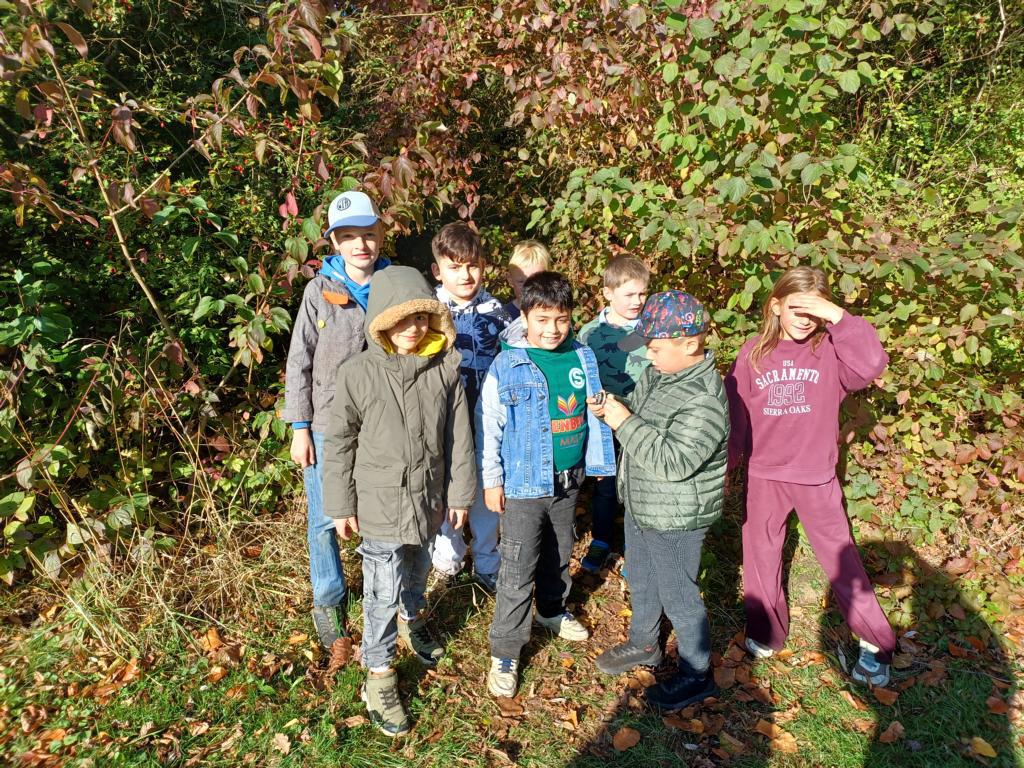 Heute waren wir im Grünen Klassenzimmer in Schloß Neuhaus. Zuerst sind wir von der Schule zum Startpunkt gewandert. Das ging ziemlich schnell, weil wir gute Wanderer sind.