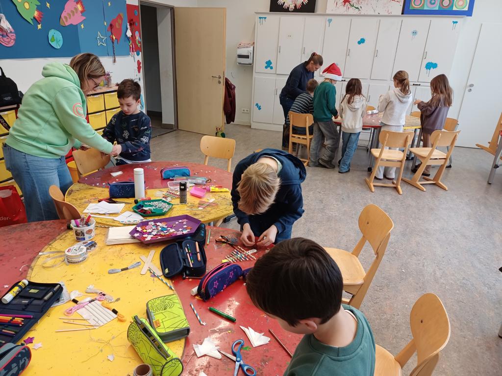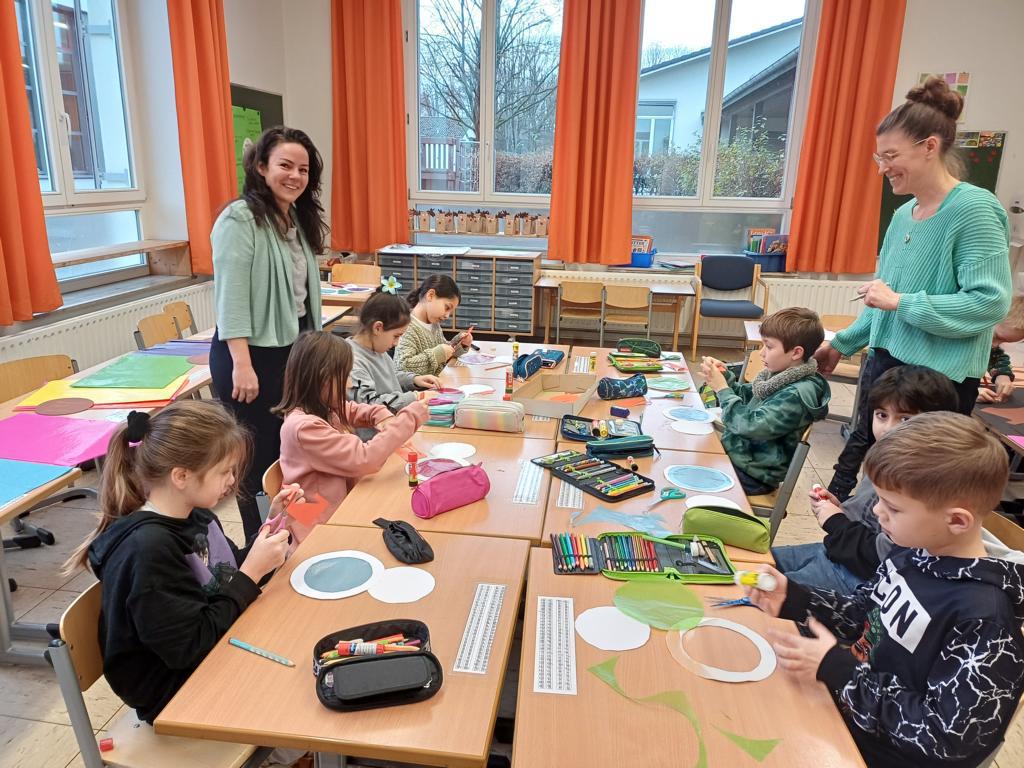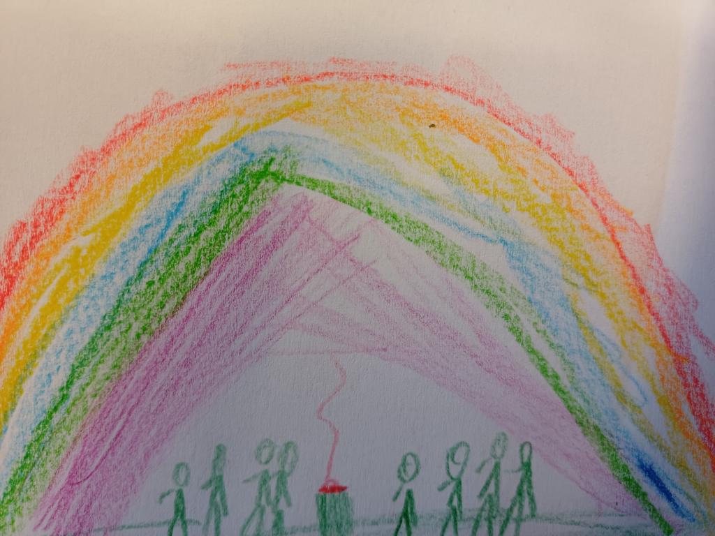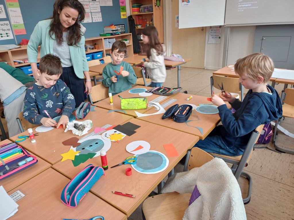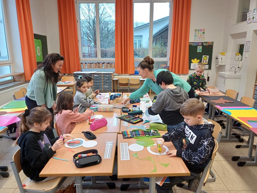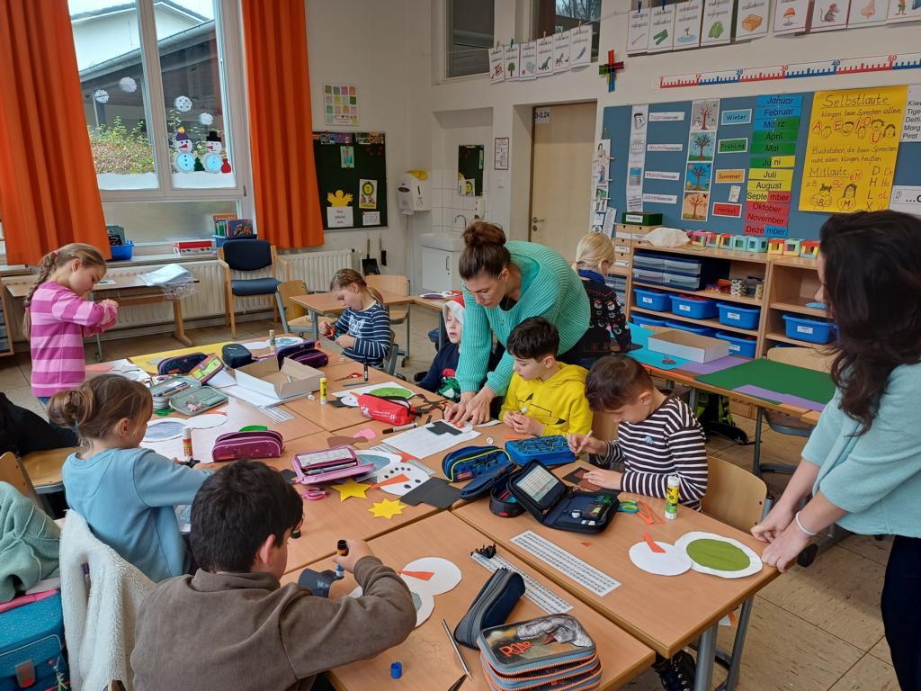 In der 2c ging es im Religionsunterricht um Noah und seine Arche. Wir haben die Geschichte aus der Bibel gehört, mit einer großen Holzarche und Figuren nachgespielt und dazu ein kleines Büchlein erstellt. Besonders schön leuchten die Regenbögen, die Gottes Verbindung zu den Menschen darstellen. Zum Abschluss der Reihe haben wir die Geschichte noch einmal „auf unserem Rücken“ erlebt, als ein Partner dazu ganz vorsichtig Bewegungen mit den Fingern gemacht hat.