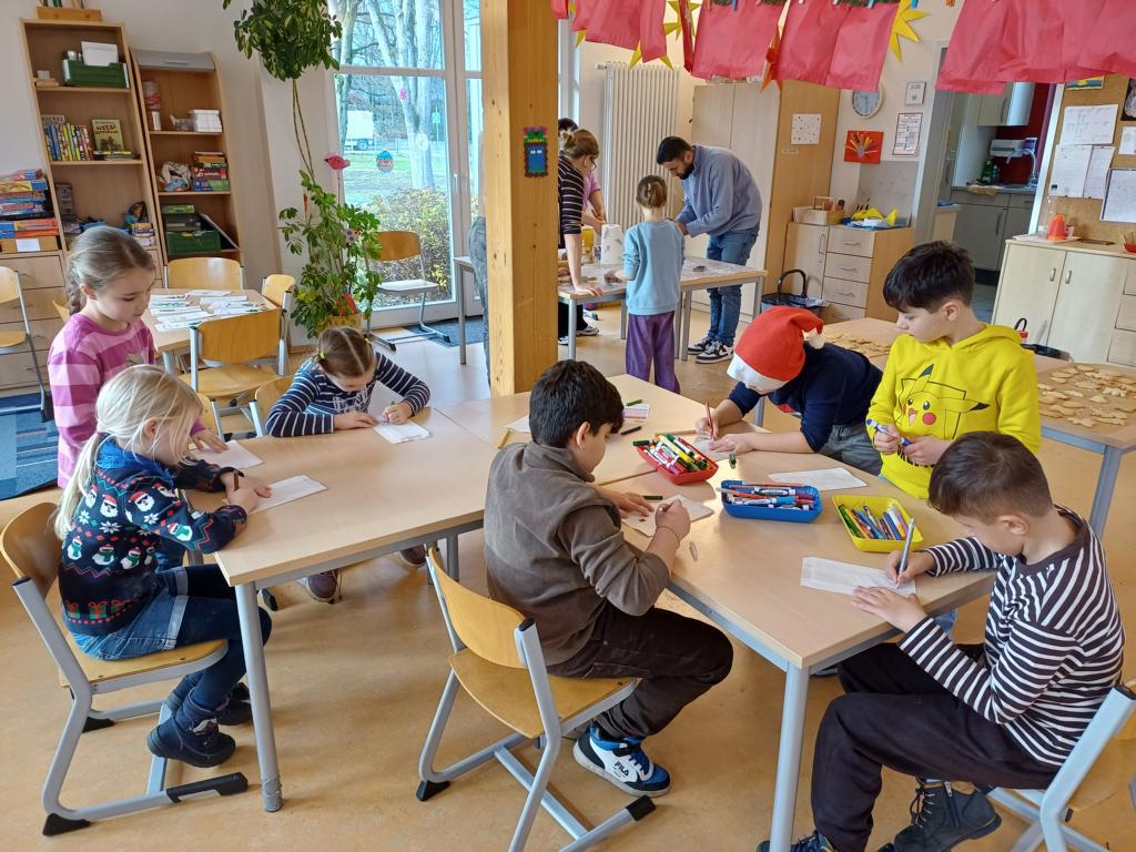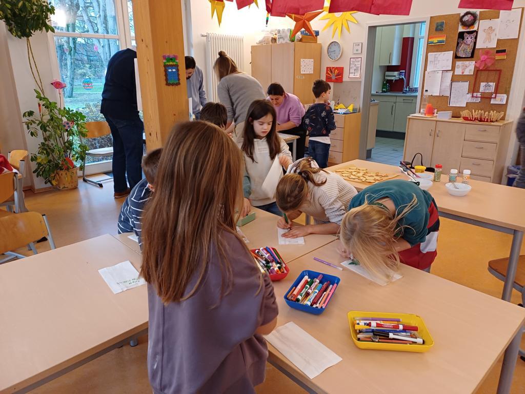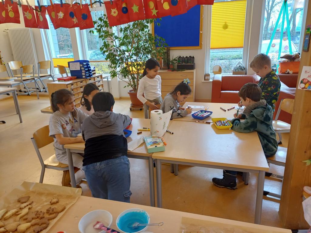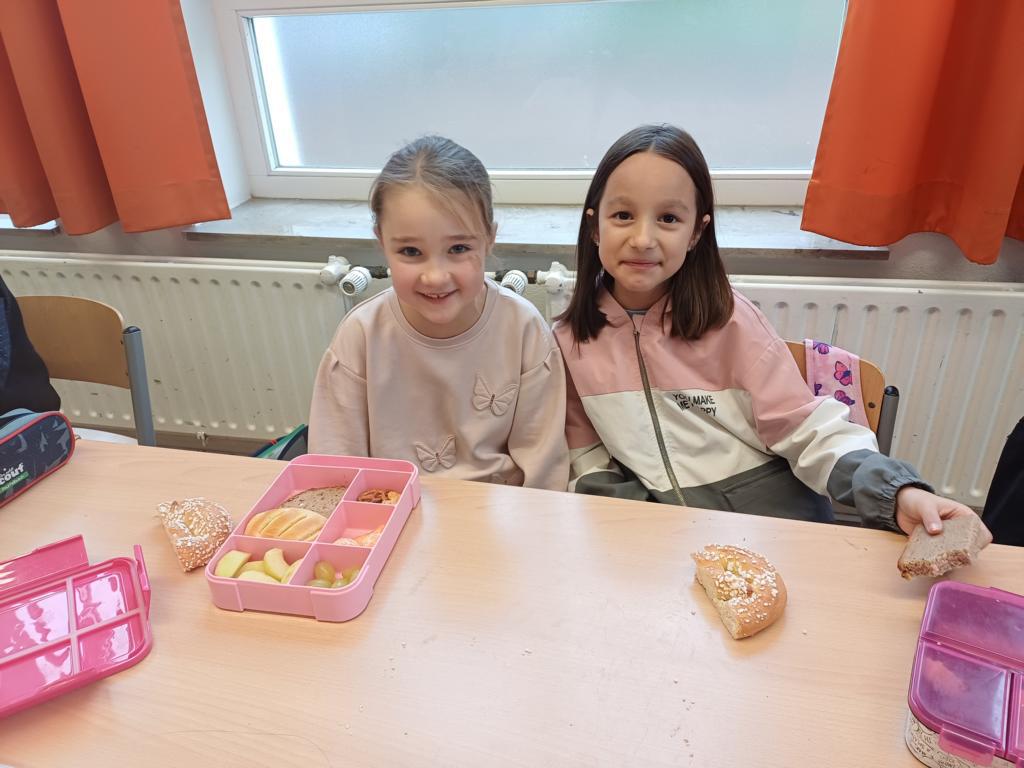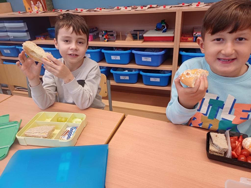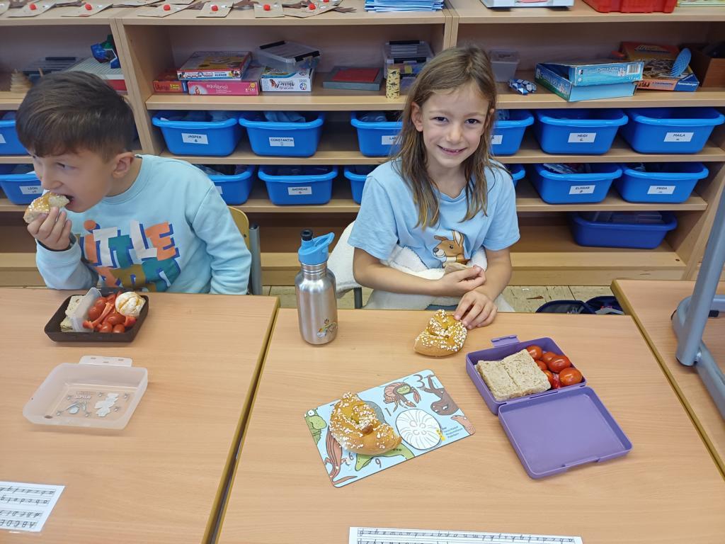 In dieser Woche feiern wir das Martinsfest. Am 14.11. sind wir dazu in die Kirche gegangen. Die Kinder aus den Klassen 3 haben den Gottesdienst vorbereitet. Nachdem wir wieder in der Klasse waren, bekamen immer zwei Kinder eine Martinsbrezel. Diese wurde gerecht geteilt.