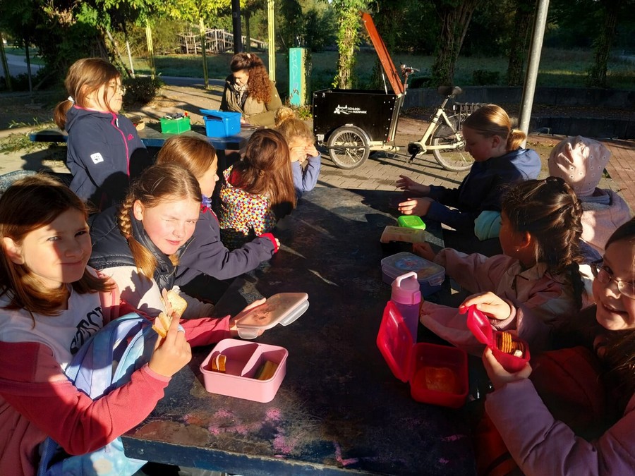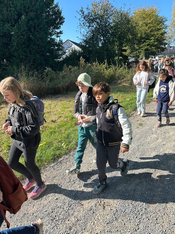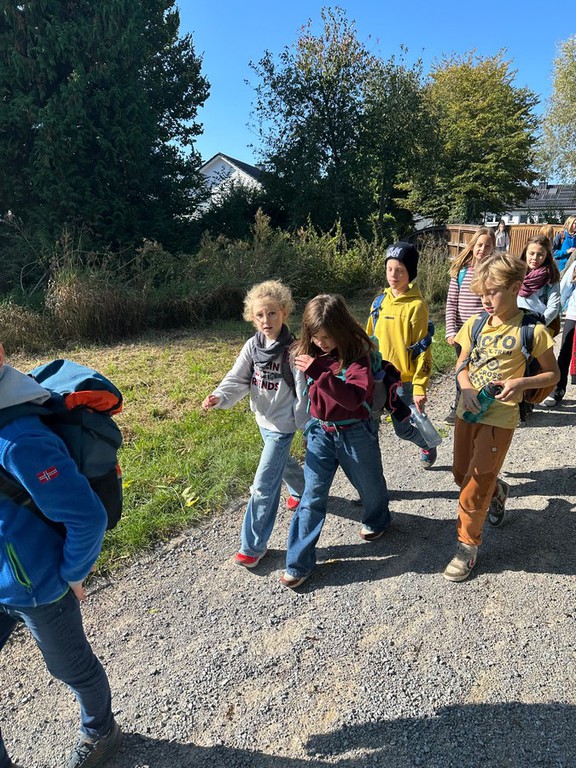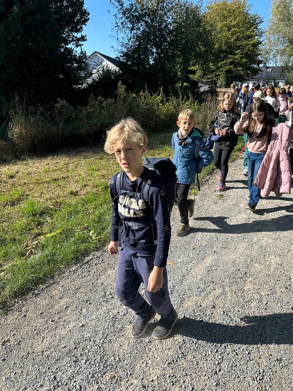 Anfang Oktober fand wieder unsere Sternwanderung statt. Dieses Jahr ging es bei strahlendem Sonnenschein für alle 4. Schuljahre nach Schloß Neuhaus zum großen Wasserspielplatz. Nach einem schönen Hinweg konnten wir vor Ort erstmal frühstücken und dann überall auf dem Gelände spielen. Wir waren dann gut ausgepowert, sodass uns der Rückweg, ebenfalls zu Fuß, etwas schwerer fiel. Dennoch hat der Tag wieder sehr viel Freude bereitet.