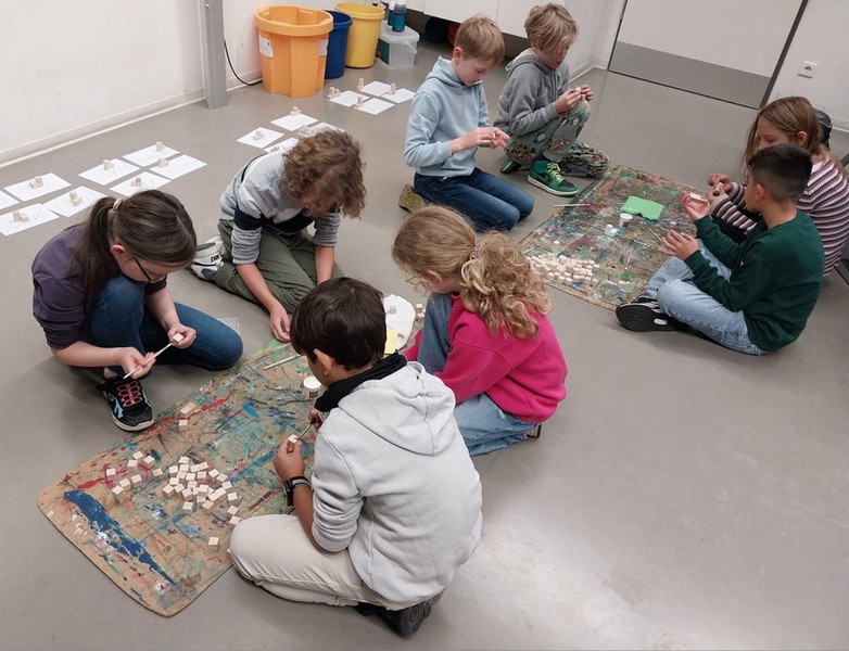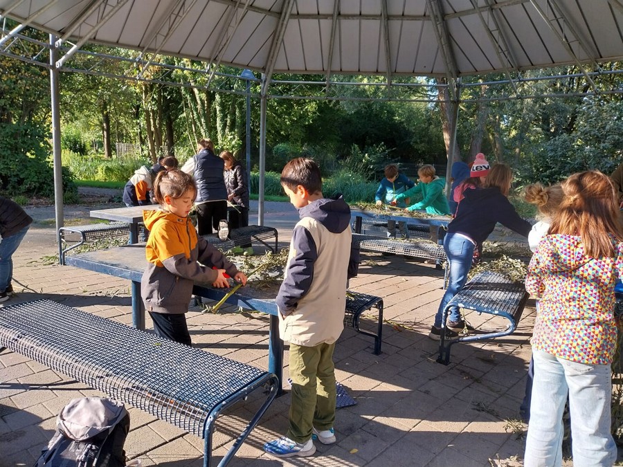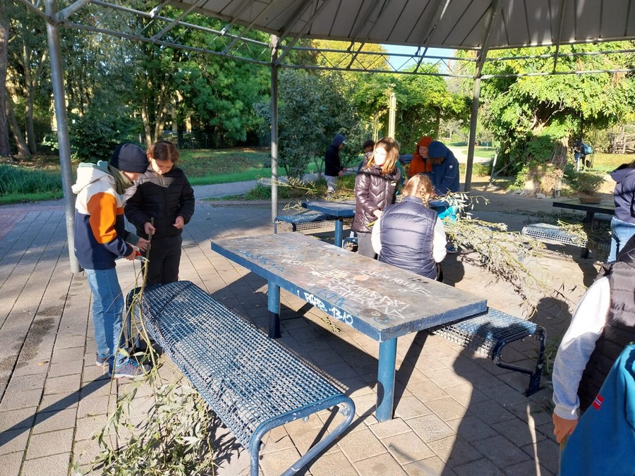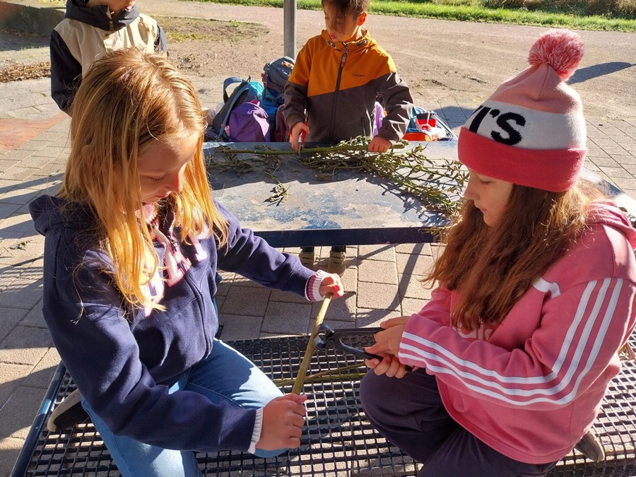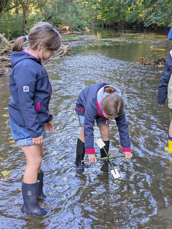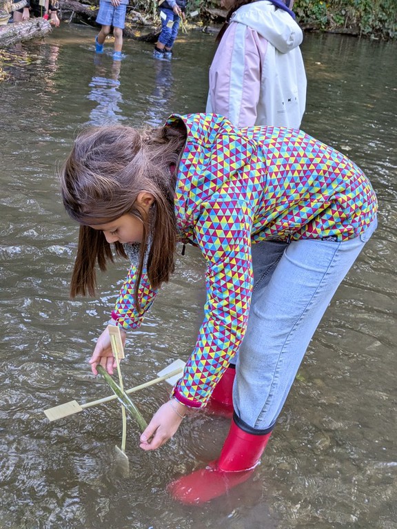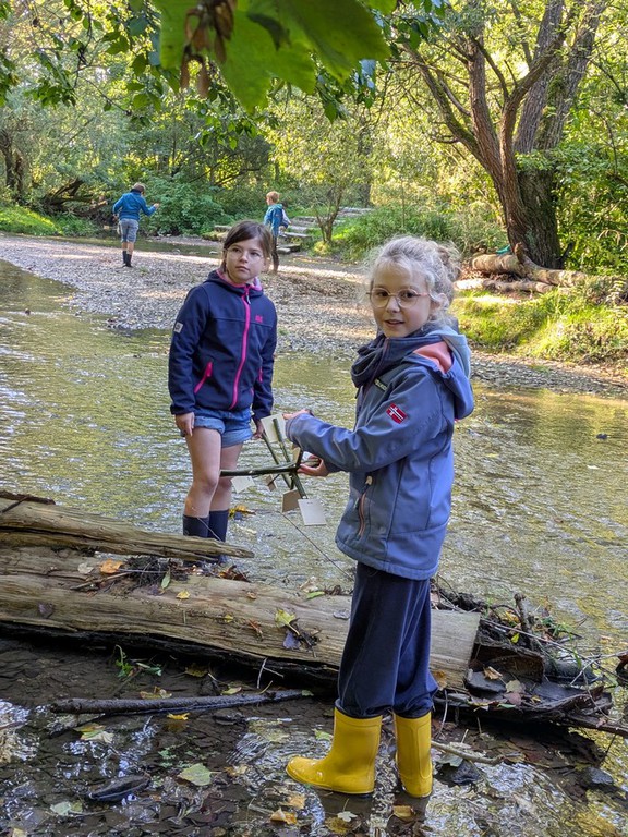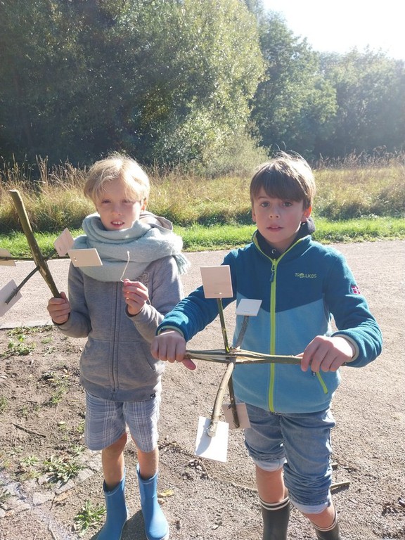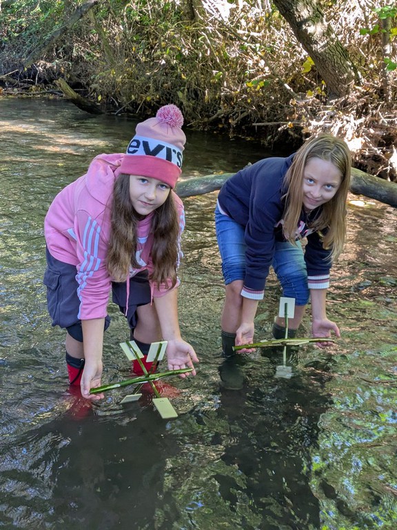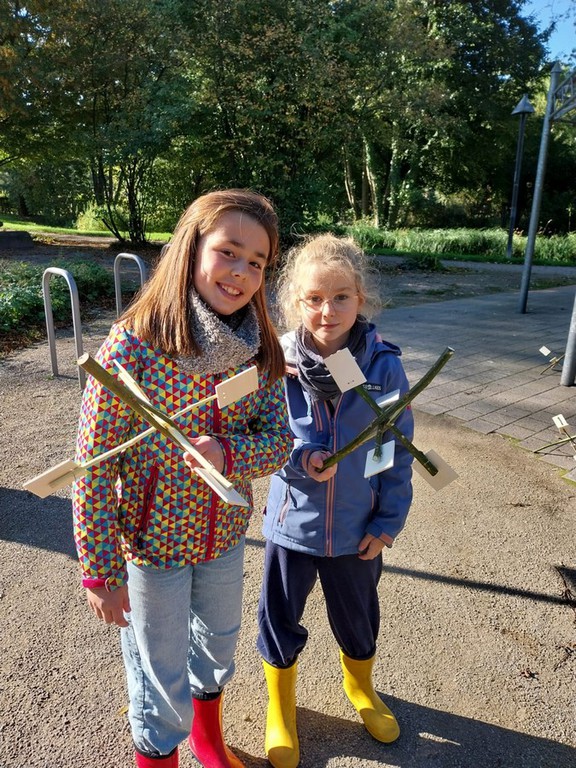 In Partnerarbeit haben wir die Wasserräder aus Ästen, kleinen Holzplatten und Draht hergestellt und dabei Werkzeuge benutzt, um alles zu befestigen. Als Team hat es so gut funktioniert, dass sich die Wasserräder hinterher im Wasser auch gedreht haben. Es war für alle ein voller Erfolg!