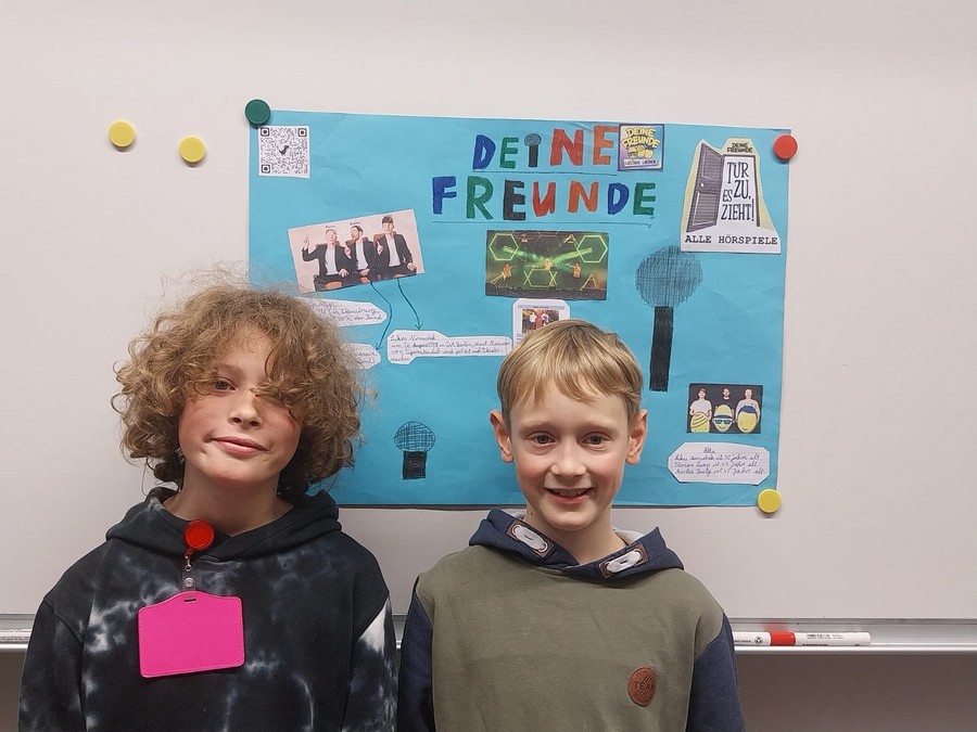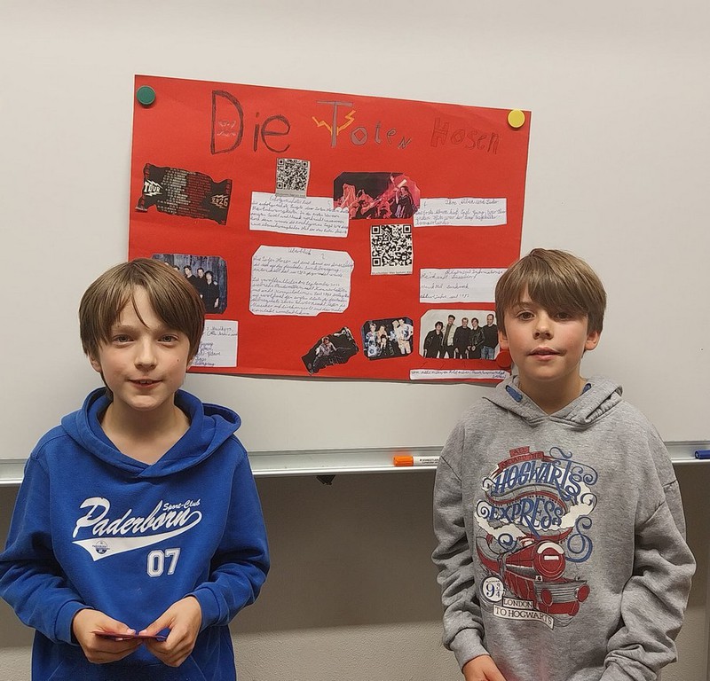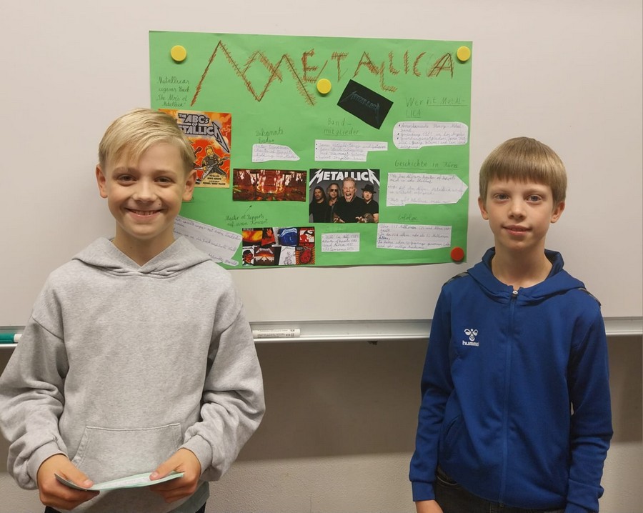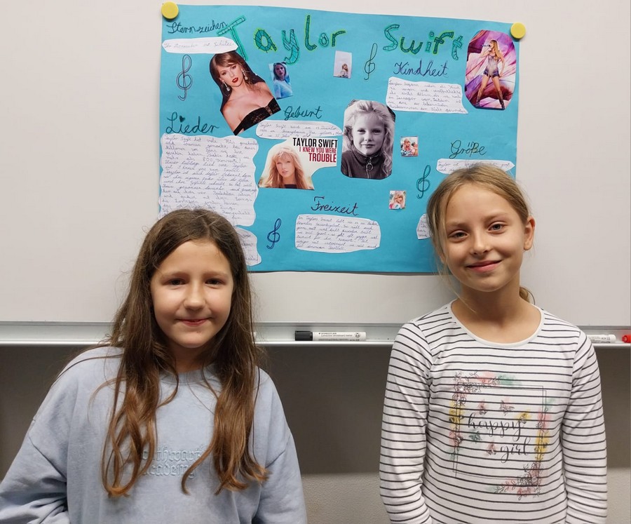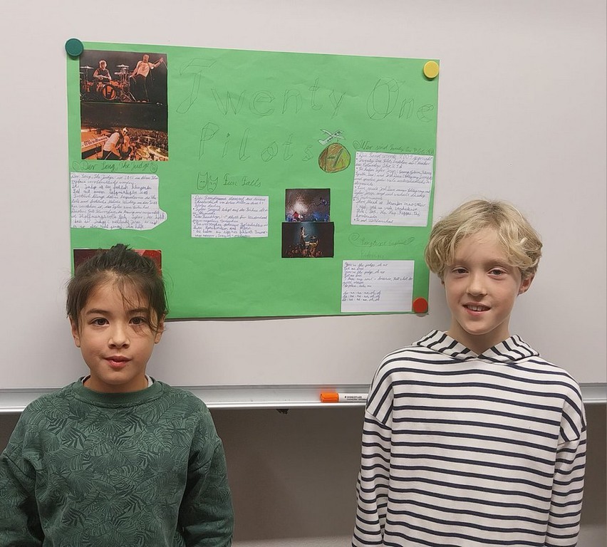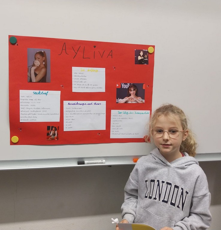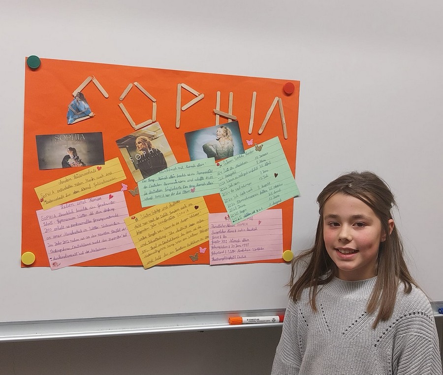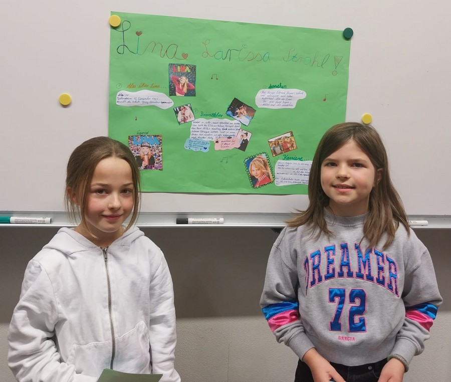 Im Musikunterricht durften wir uns vor ein paar Wochen eine Band, einen Sänger oder eine Sängerin aussuchen, wozu wir dann recherchiert haben, um hinterher ein Plakat mit wichtigen Informationen und Bildern gestalten zu können. Alleine oder in Partnerarbeit haben wir Material mitgebracht bzw. wir durften auch im Internet schauen, was wir so finden. Nachdem wir alles gelesen hatten, haben wir auf Zettel das Wichtigste zusammengefasst und auf das Plakat geklebt. Hinterher haben wir das Plakat noch schön gestaltet und unseren Vortrag geübt. Alle Kinder haben ihre Plakate präsentiert und toll war, dass wir dann noch gemeinsam in die Lieder hineingehört haben.