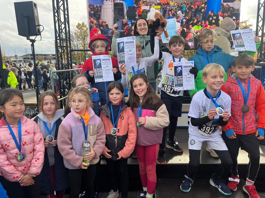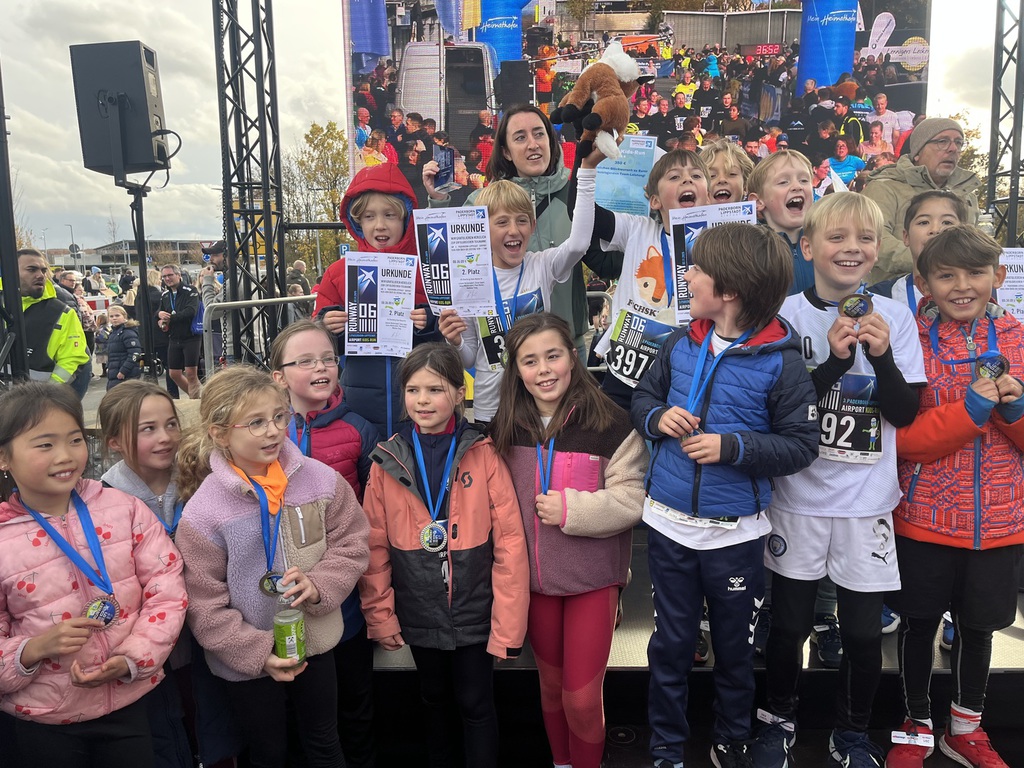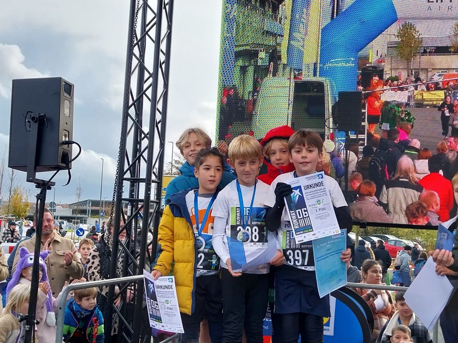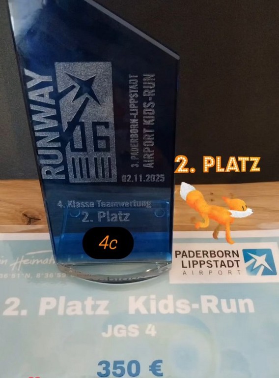 Bereits zum 3. Mal fand im Rahmen des Airport-Run auch der Kids-Run statt. Bei der Landebahn startend ging es über das Feld bis hin zum Haupteingang des Terminals, wo der Zieleinlauf war. Die Strecke war 1,7 km lang und wichtig war, dass immer 5 Kinder einer Klasse möglichst schnell ins Ziel kamen, um dann in dieser Wertung eine nicht allzu hohe Gesamtzeit zu erreichen. Nachdem wir letztes Jahr bereits beim 2. Airport Run mitgelaufen sind, aber leider krankheitsbedingt einige Kinder nicht mitlaufen konnten, wollten wir dieses Jahr unbedingt wieder antreten, um Geld für die Klassenkasse zu bekommen und in unserem letzten Schuljahr nochmal eine schöne gemeinsame Aktion von dem Geld ausführen zu können. Mit 17 Kindern gingen wir an den Start und wir waren ganz schön aufgeregt. Nach dem Startschuss haben wir alles gegeben und es sah erstmal gut für uns aus. Trotzdem mussten wir auf die Siegerehrung warten, denn es haben an die 600 Kinder daran teilgenommen und es waren viele gute Läufer und Läuferinnen dabei. Nachdem der 3. Platz bereits vergeben war sagte der Sprecher, dass der 2. Platz an eine 4c geht. Da waren wir uns schon fast sicher, dass es gereicht haben muss und dann wurde unsere Schule genannt. Alle haben gejubelt und sich mit uns gefreut. Unsere schnellsten 5 Läufer durften dann noch auf das Treppchen und das waren: Johann, Elean, Janus, Paul und Mati. Aber auch alle anderen Kinder sind sehr schnell gewesen und haben alles gegeben. Wir konnten es kaum glauben, aber alle waren überglücklich, das Ziel erreicht zu haben! Den Pokal haben wir bereits in unsere Klasse neben unser Klassentier gestellt und in der nächsten Zeit überlegen wir dann gemeinsam, was wir mit dem Geld machen können. Es war ein voller Erfolg!